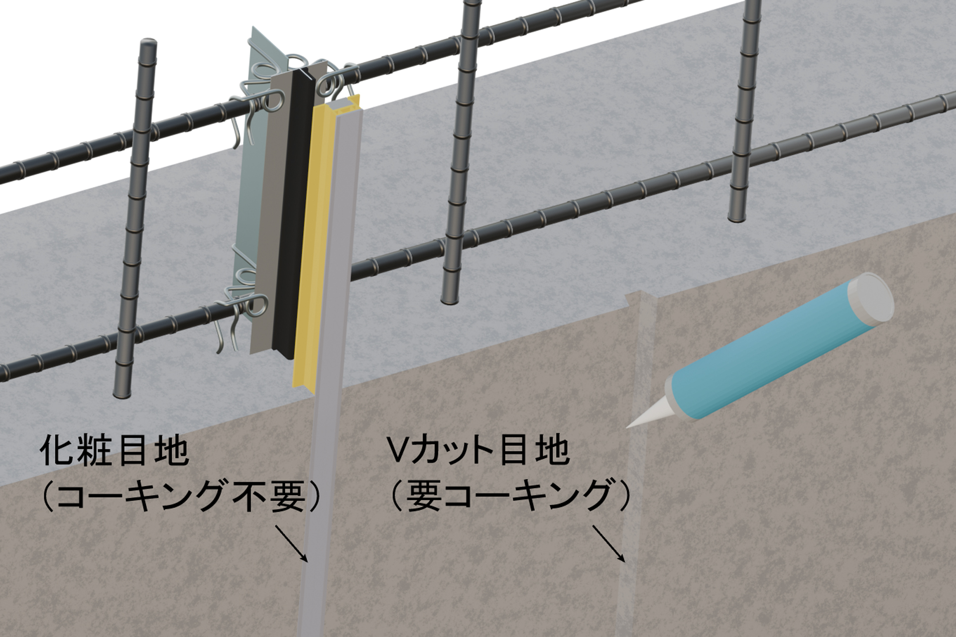 表面に化粧目地を使用することで、シーリング材によるコーキング処理を不要にすることも可能。定期的な補修作業が不要となり、長期的な維持管理コストを削減。打ちっ放し仕上げに最適。
