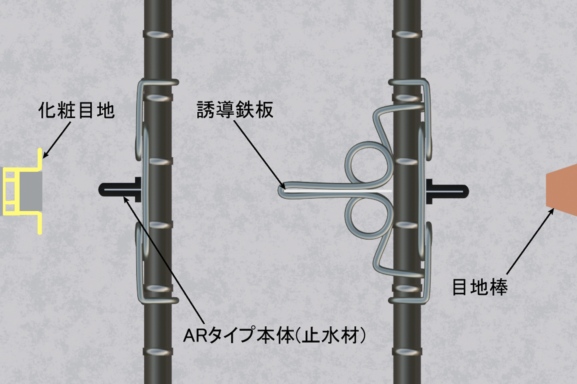 目地本体と3種の誘導鉄板により、意図した箇所に効率よくひび割れを誘発。断面欠損率も自由に調整できるので、様々な壁厚にも対応可能。