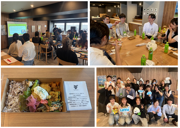 ランチタイムには、島根県沖で採れた魚、バトウのフライをメインに、島根県産の食材をたっぷり使ったお弁当が提供されました。食事をしながら、インターンシップへの興味や島根のこと、自身の地元のことなど、職員の方々との和やかな会話が続きました。