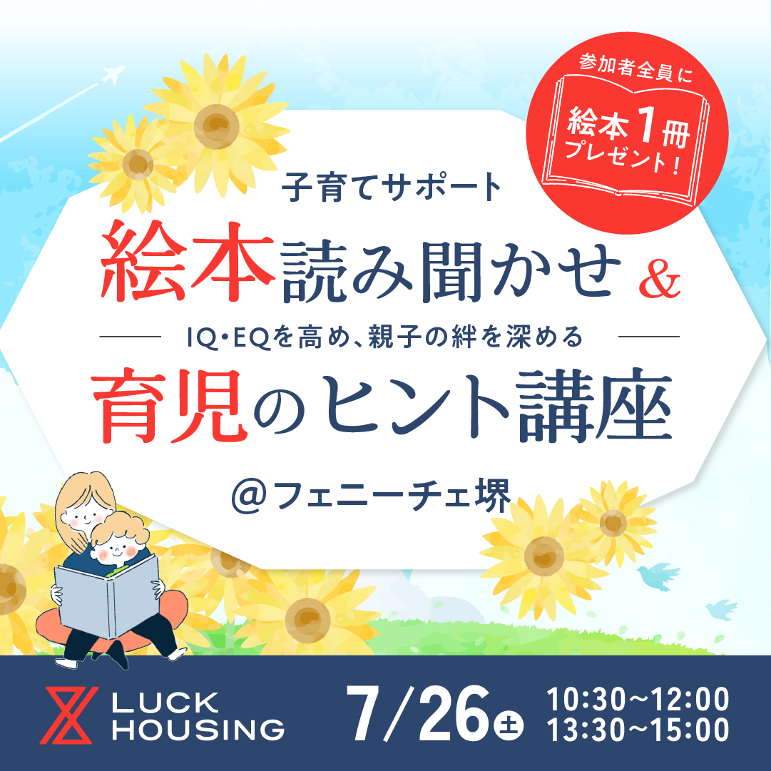 大阪府堺市に本社を置き、新築・リフォーム・不動産事業を展開する株式会社ラックハウジング(代表取締役:阪口加津也)は、7月26日(土)に堺市のフェニーチェ堺にて「絵本読み聞かせ&育児のヒント講座」を開催いたします。
