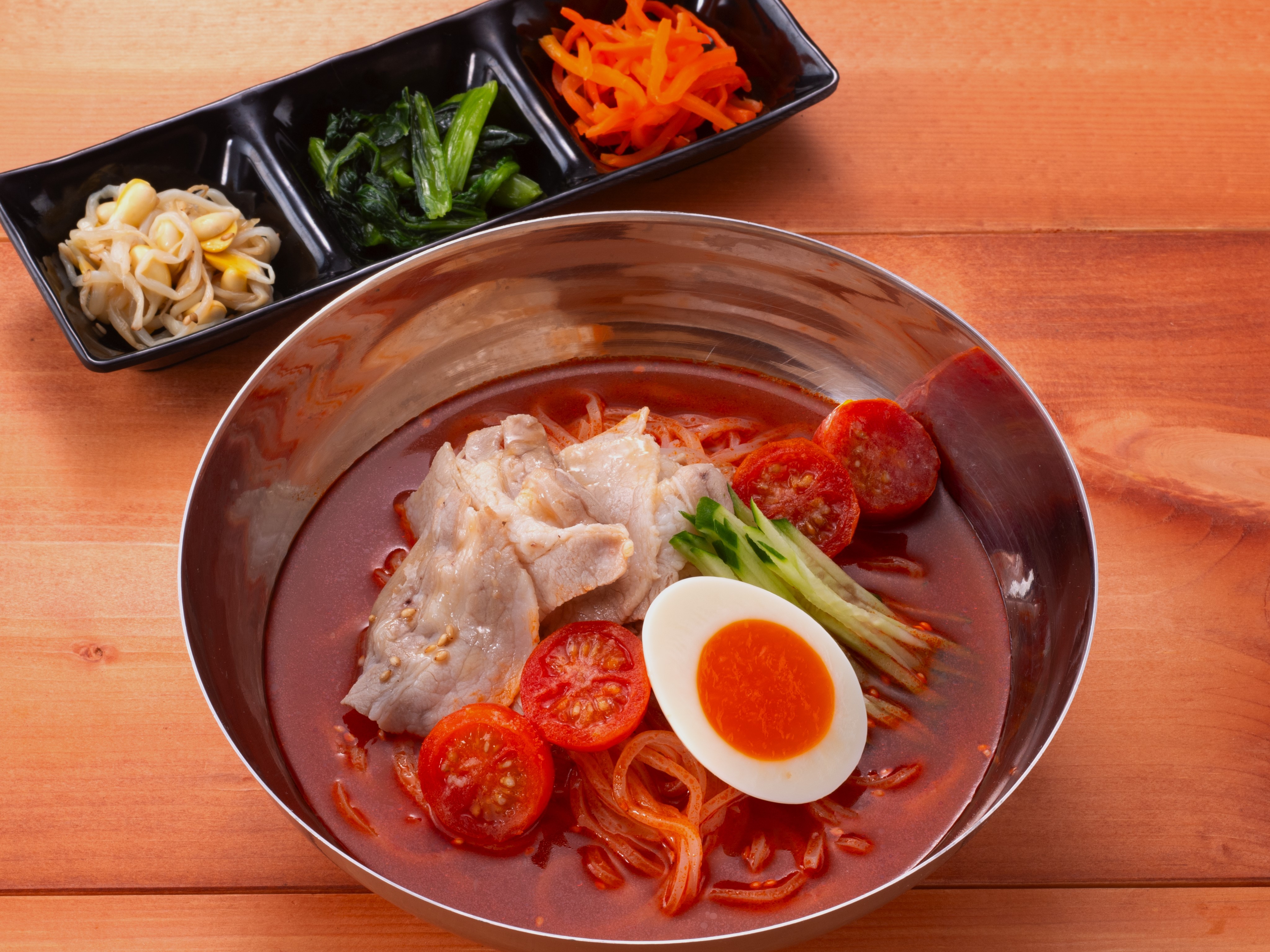 「濃厚✕さっぱり」とした味のコントラストにこだわり、夏バテで食欲がなくても箸がすすむ、夏にぴったりのメニューに仕上げました。3種のナムルもセットのため、野菜もしっかり摂ることができます。