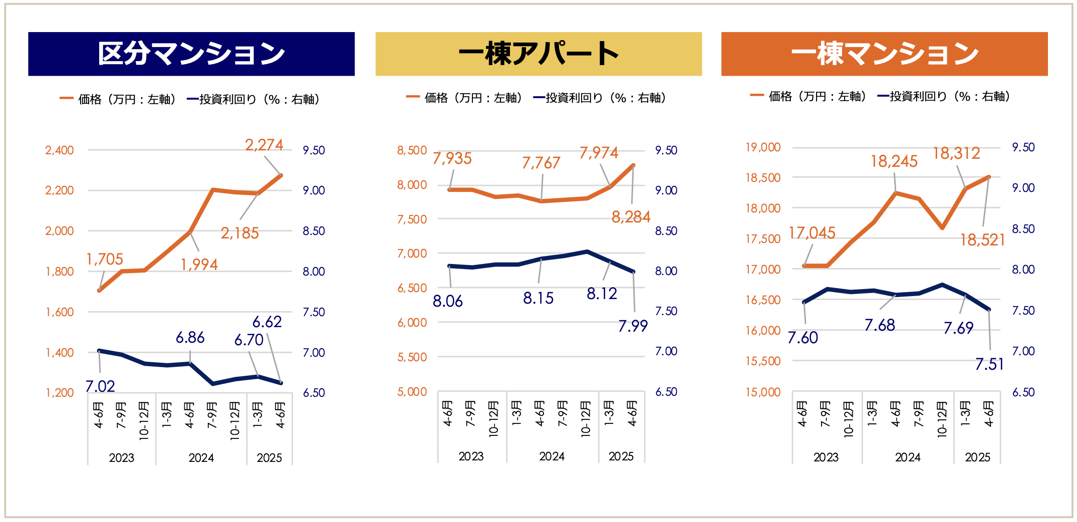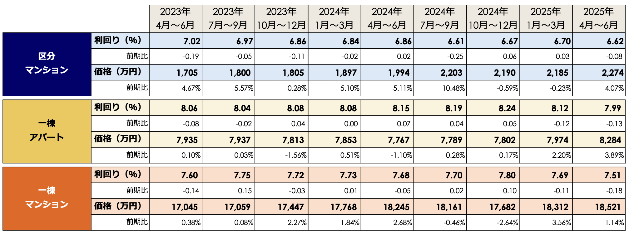 住宅系3種別とも価格上昇、区分マンション前年同期比+14% 「収益物件 市場動向四半期レポート」2025年4月~6月期