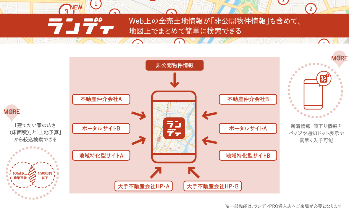 ▪ Web上の全売土地情報が「非公開物件情報」も含めて、まとめて検索できる
