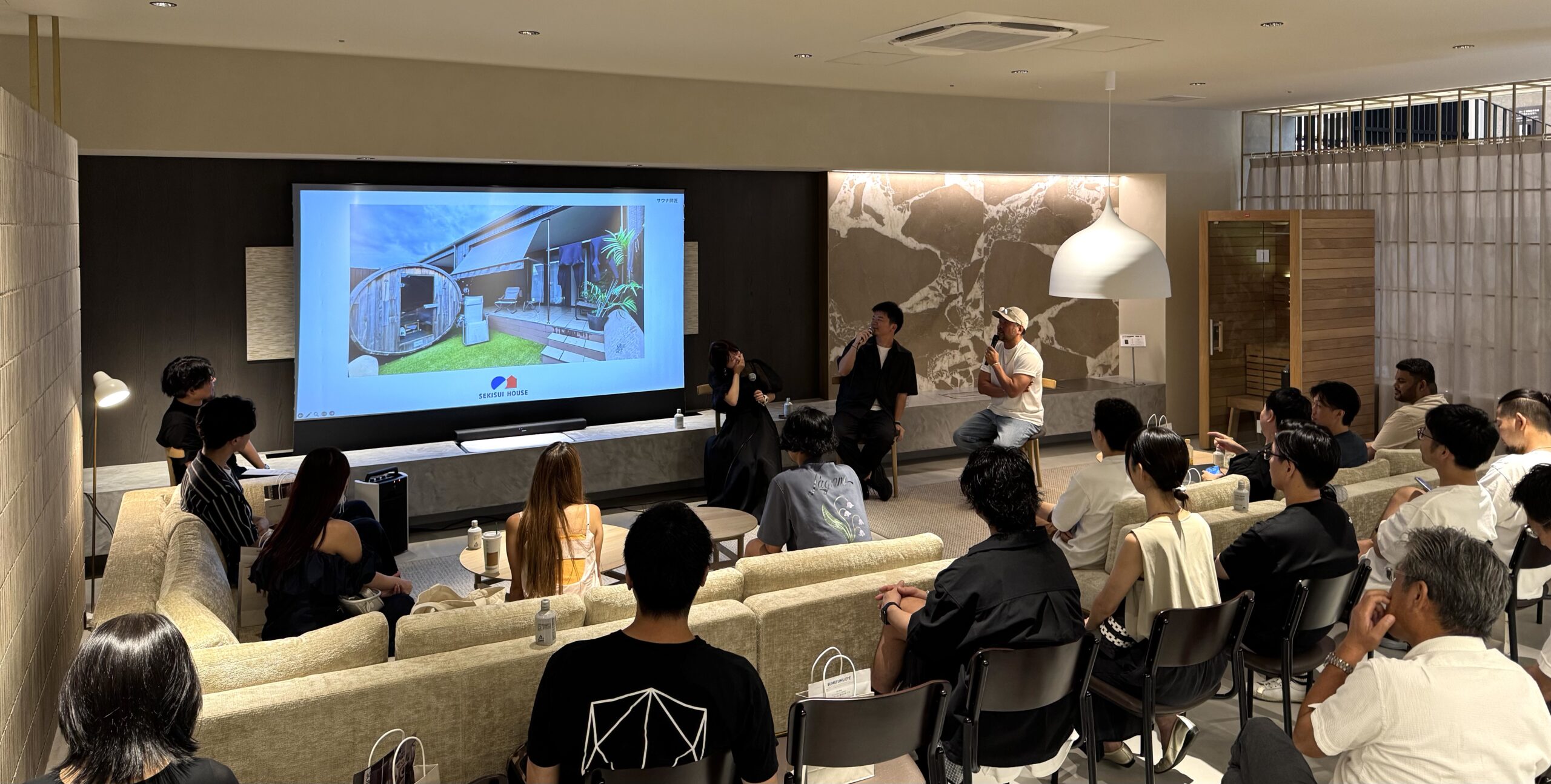 イベントではまず、スムフムテラス自由が丘の責任者 林悠氏より開会の挨拶が行われ、「家族と過ごす時間を豊かにする暮らしの提案」として、積水ハウスが実際に販売をしていく上でサウナのニーズが高い事例の紹介や、サウナが体験できる積水ハウスモデルハウスが紹介されました。