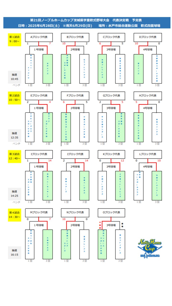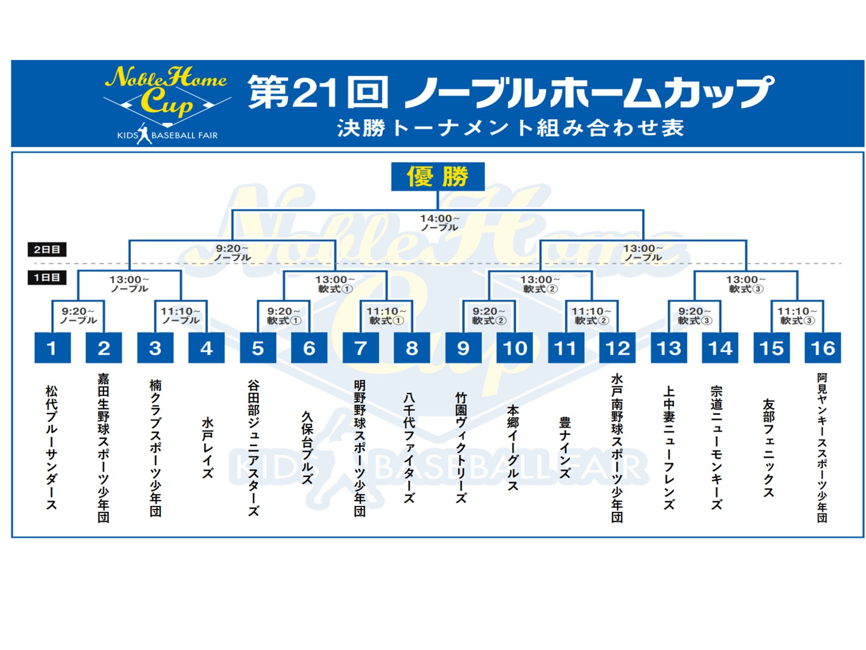 松代ブルーサンダース、嘉田御生野球スポーツ少年団、楠クラブ、水戸レイズ、谷田部ジュニアスターズ、久保台ブルズ、明野野球スポーツ少年団、八千代ファイターズ、竹園ヴィクトリーズ、本郷イーグルス、豊ナインズ、水戸南野球スポーツ少年団、上中妻ニューフレンズ、宗道ニューモンキーズ、友部フェニックス、阿見ヤンキーススポーツ少年団