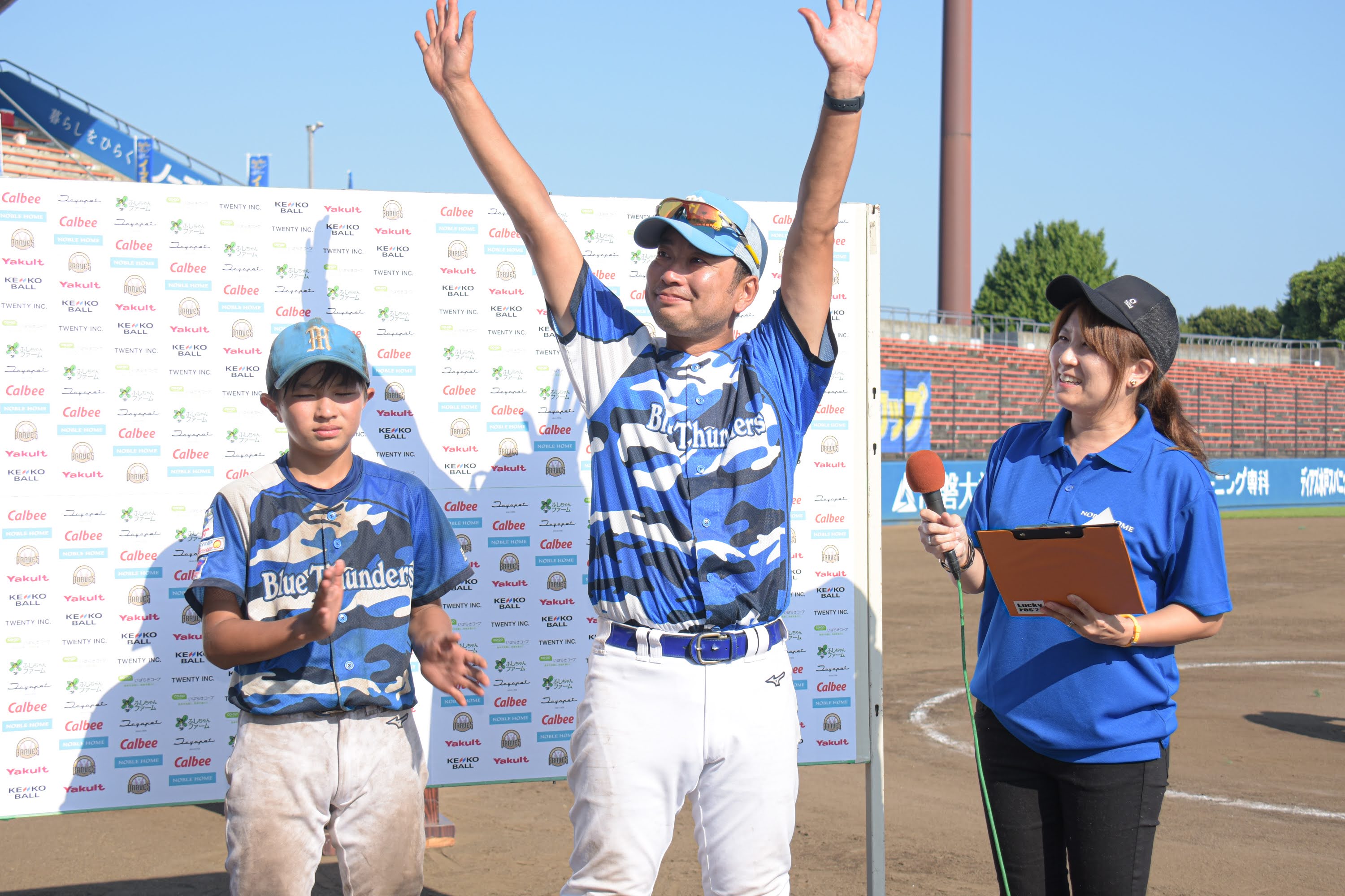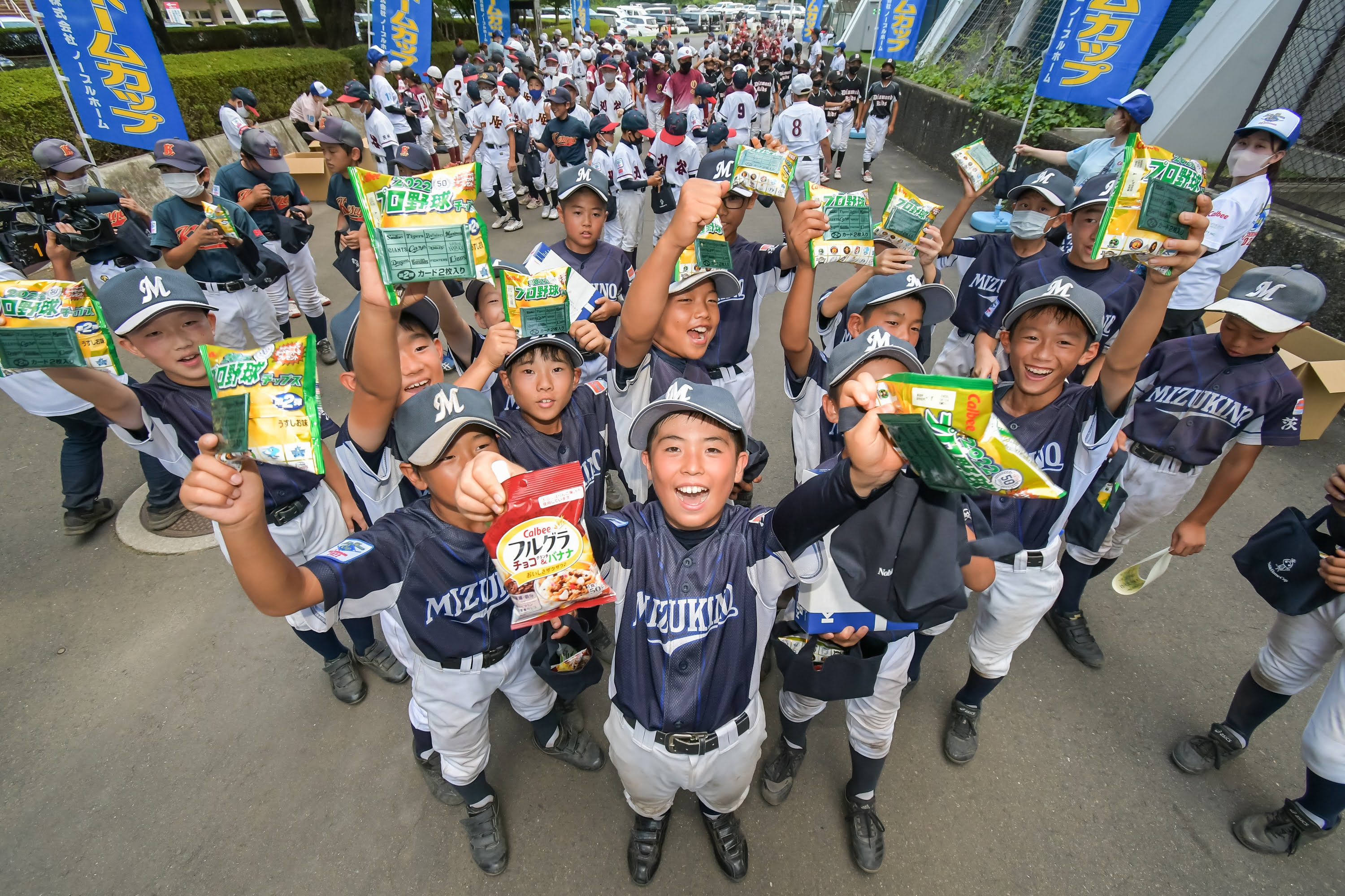 ・チーム代表選手2名および大人1名が参加するホームラン競争の実施と、参加チーム全員応援合戦