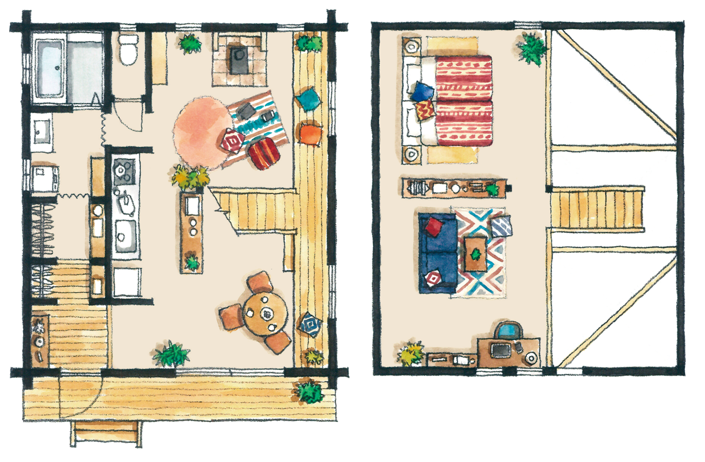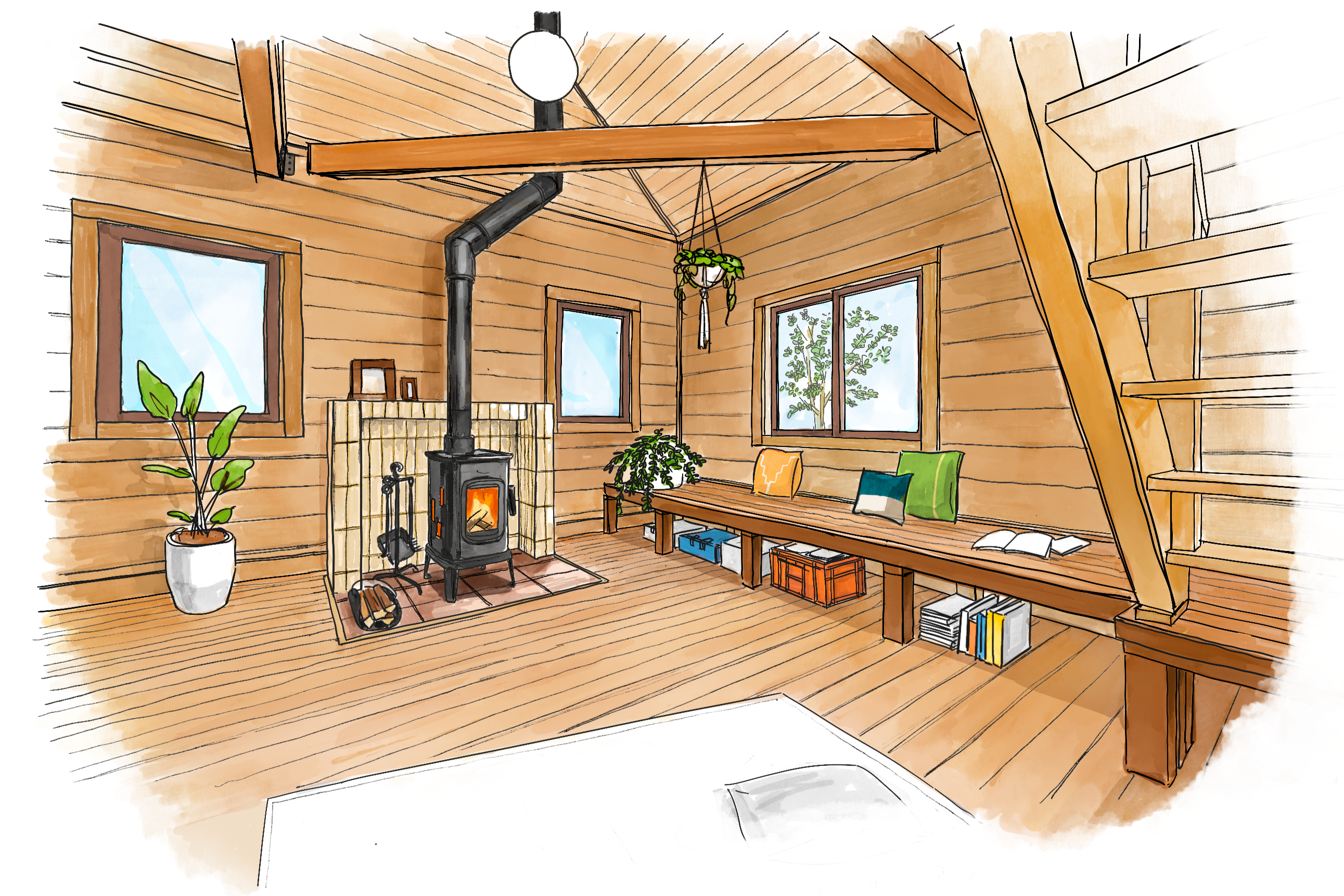 おおらかで素朴なログの風合いに、個性的なカラーリングで遊びごころを加えました。