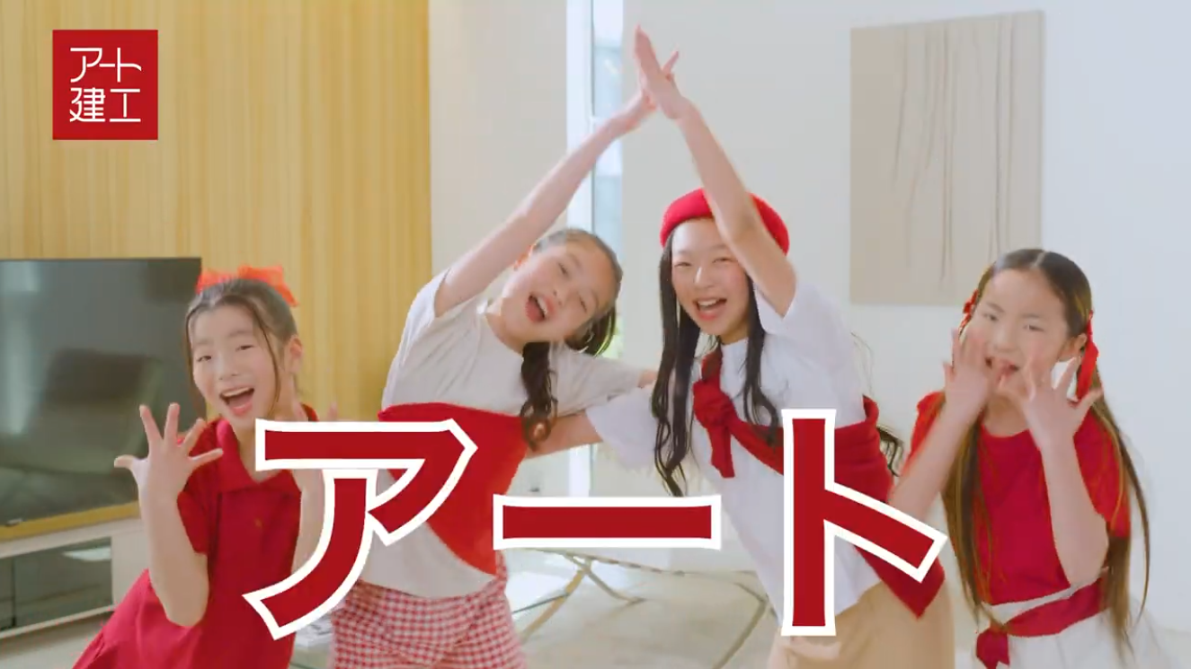 本CMでは、山陰にお住まいのお子さまを起用し、アート建工の出雲アートビレッジ住宅展示場のモデルハウスで撮影しました。一度聴くと覚えやすい、明るいメロディとダンスのCMが完成しました。出演しているお子さまのダンスと笑顔にもご注目ください。