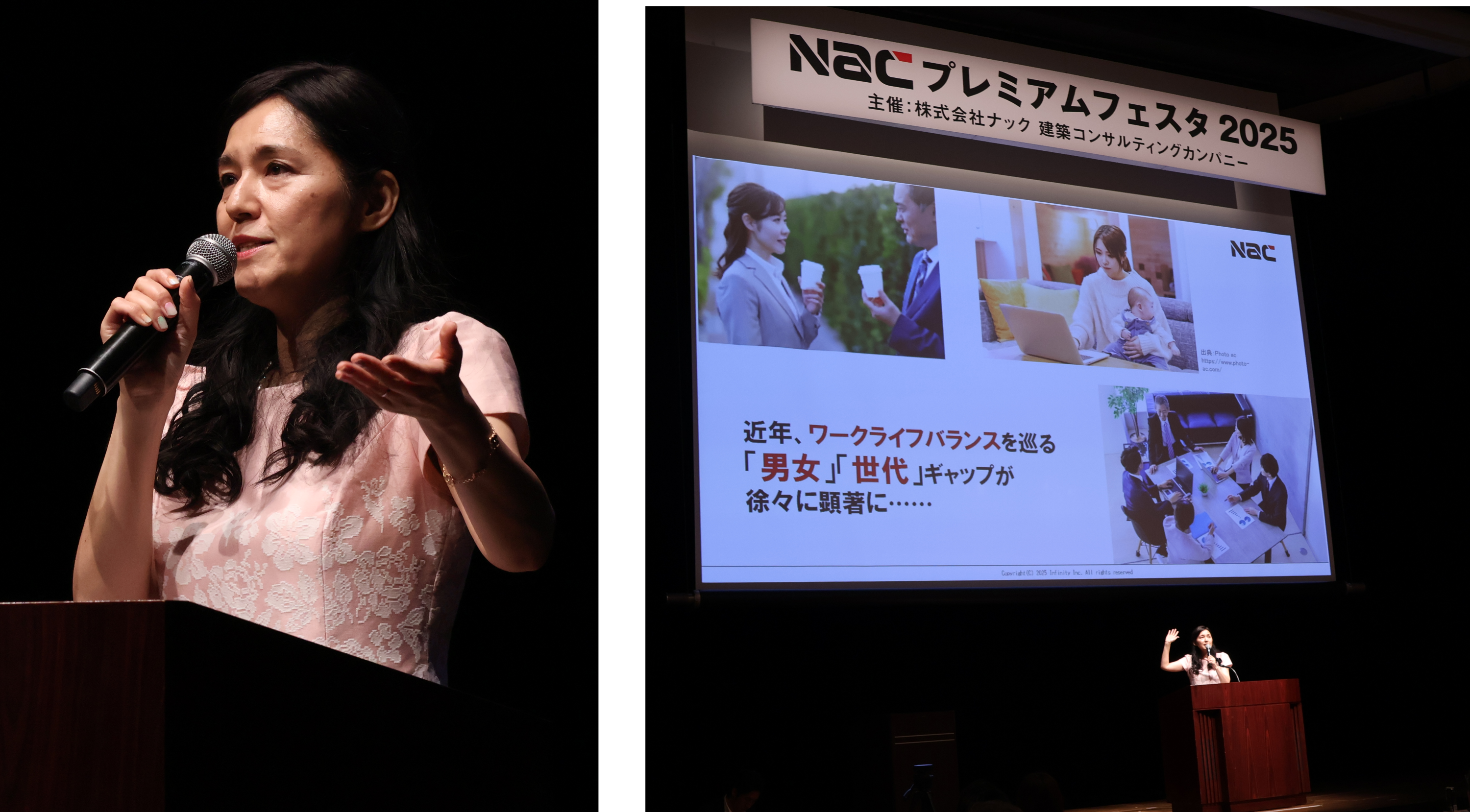 コロナ禍を経て約8年ぶりの開催となった今回は、会場参加・オンライン参加あわせて171名の皆様にご参加いただきました。当日は、当社代表と建築コンサルティングカンパニー代表による講演に加え、世代・トレンド評論家の牛窪 恵 氏の基調講演や、当社が展開する経営支援ノウハウ商品の開発元である工務店3社の代表によるパネルディスカッション、懇談会等が行われました。