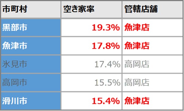 富山県内で空き家率が高い*²黒部市・魚津市を管轄