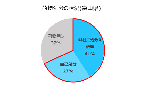 富山県の空き家は、半数以上が相続・贈与により発生しています。*⁴ 相続による空き家の場合は特に、残された荷物の処分が所有者の課題になります。*⁵ 実際に、弊社が買い取った富山県内の空き家のうち7割は、査定時に荷物が残されていました。*⁴