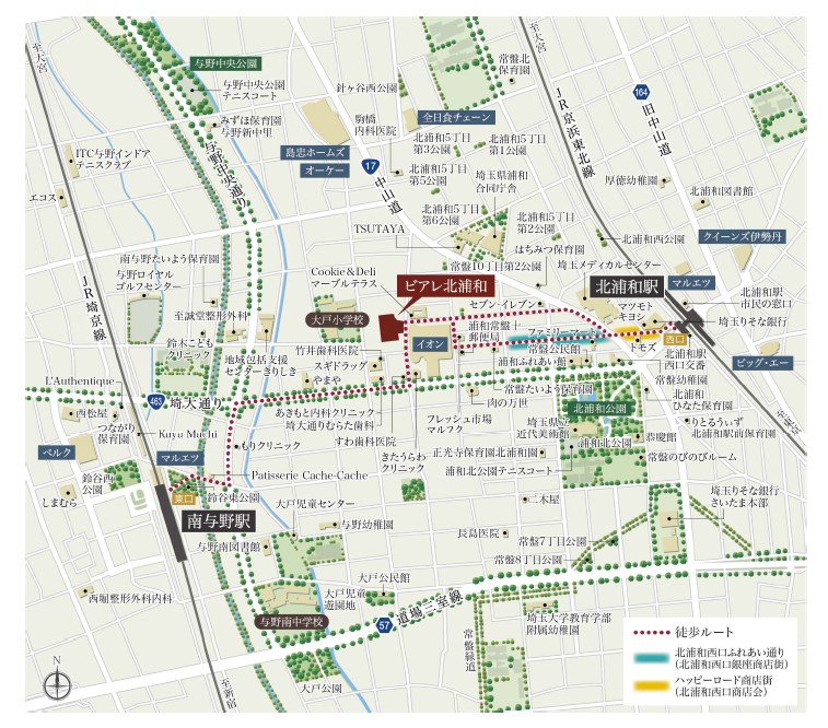 ■JR京浜東北線「北浦和」駅徒歩10分×イオン徒歩1分×小学校徒歩4分のロケーション