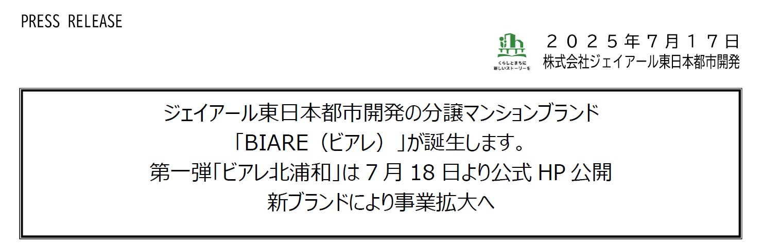 株式会社ジェイアール東日本都市開発(本社:東京都渋谷区、代表取締役社長:根本 英紀)は、分譲マンションブランド「BIARE(ビアレ)」を新たに立ち上げることを決定いたしましたので、お知らせいたします。