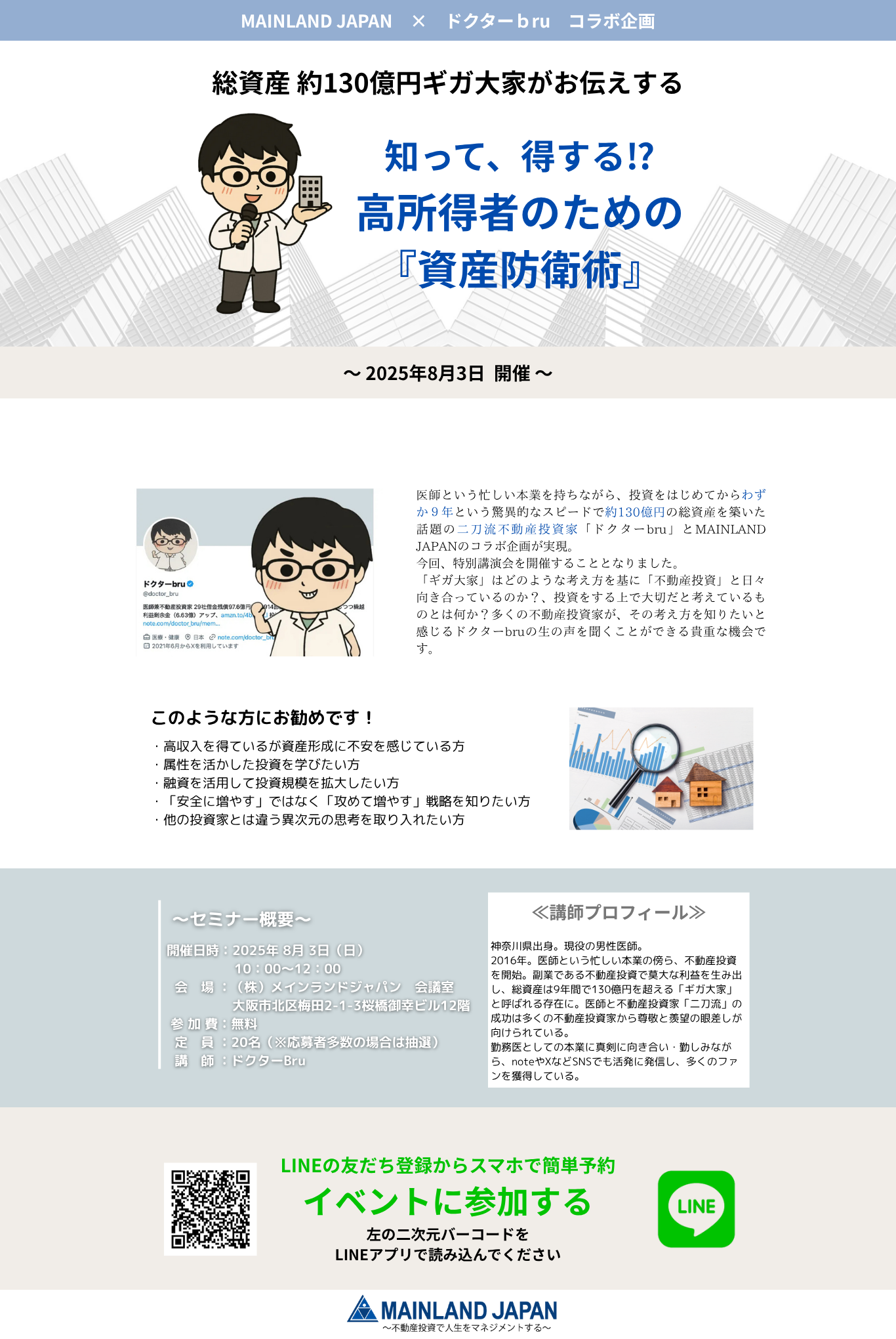ホームイベント高所得者のための「知って、得する!資産防衛術セミナー」8月3日(日)オフラインにて無料開催