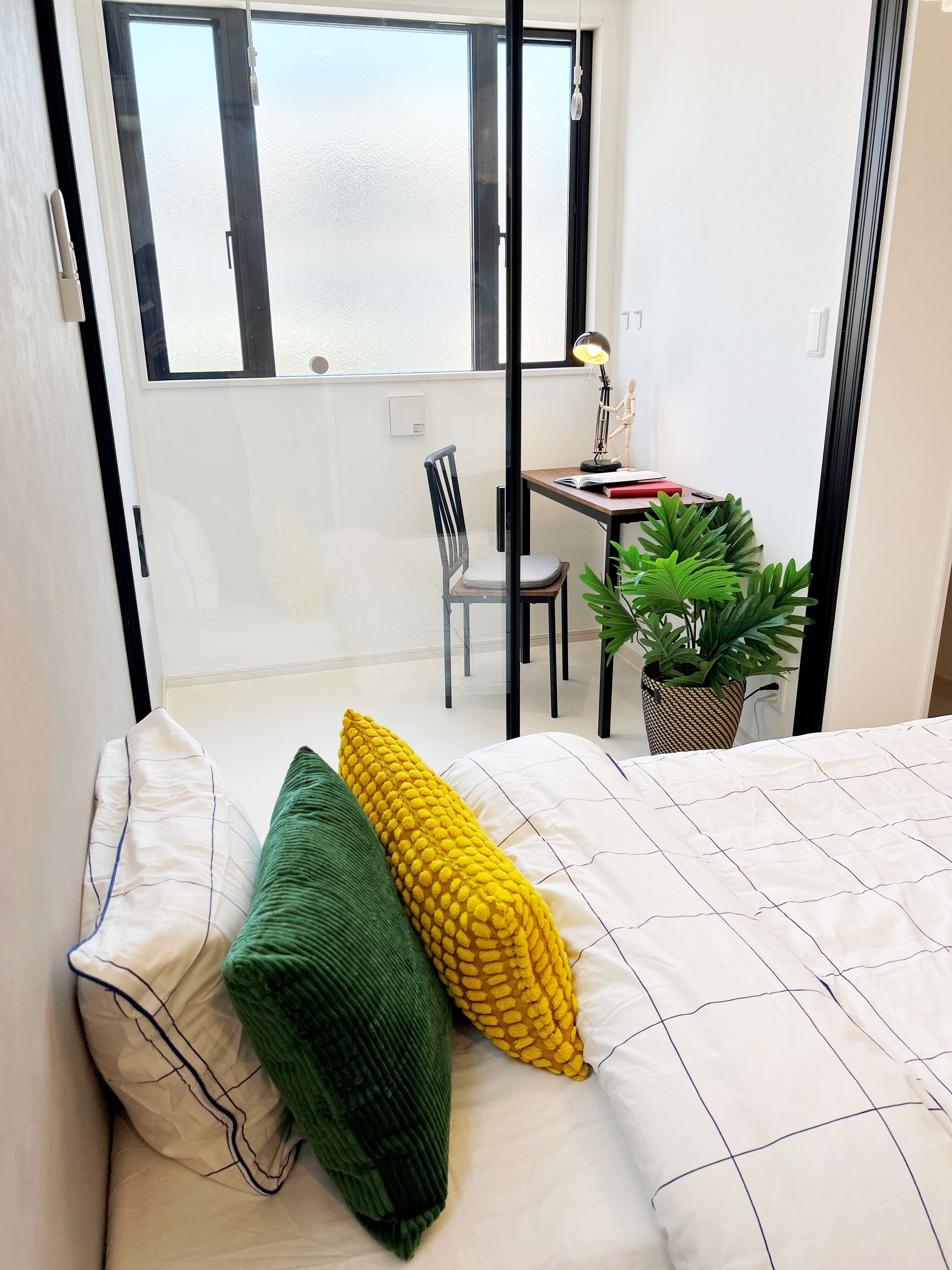 昨年実施した入居者アンケートでも要望の声が多かったこの空間は、自然光がたっぷり差し込む採光性の高さが特長。ガラスドアを採用し、開放感あふれる間取りを実現しています。