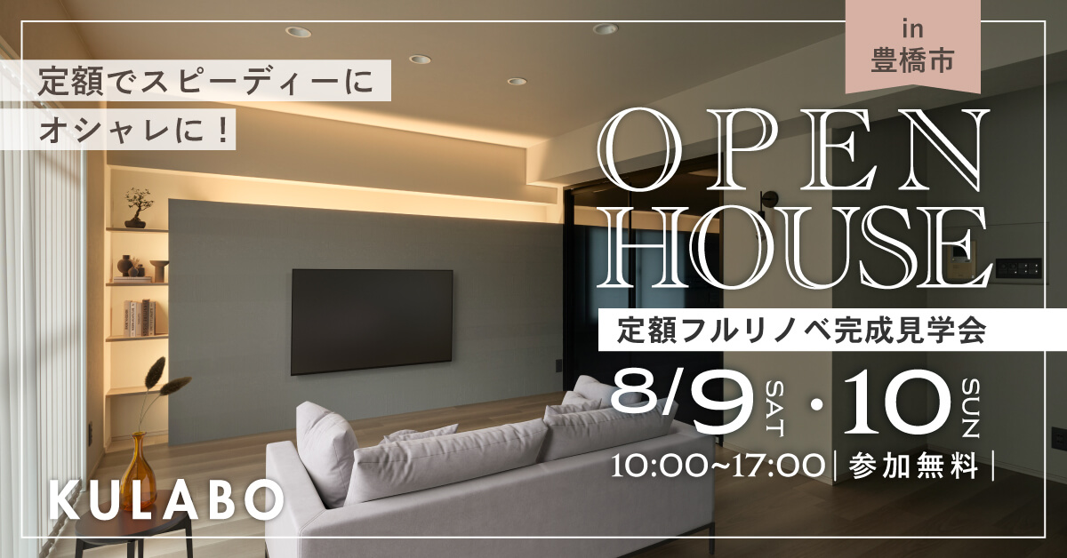 愛知県でリノベーション事業を展開する株式会社sumarch(本社:愛知県名古屋市中村区、代表取締役:鳥居儀彰、以下KULABO)は、マンションリノベーション見学会を2025年8月9日(土)・10日(日)、愛知県豊橋市にて開催いたします。