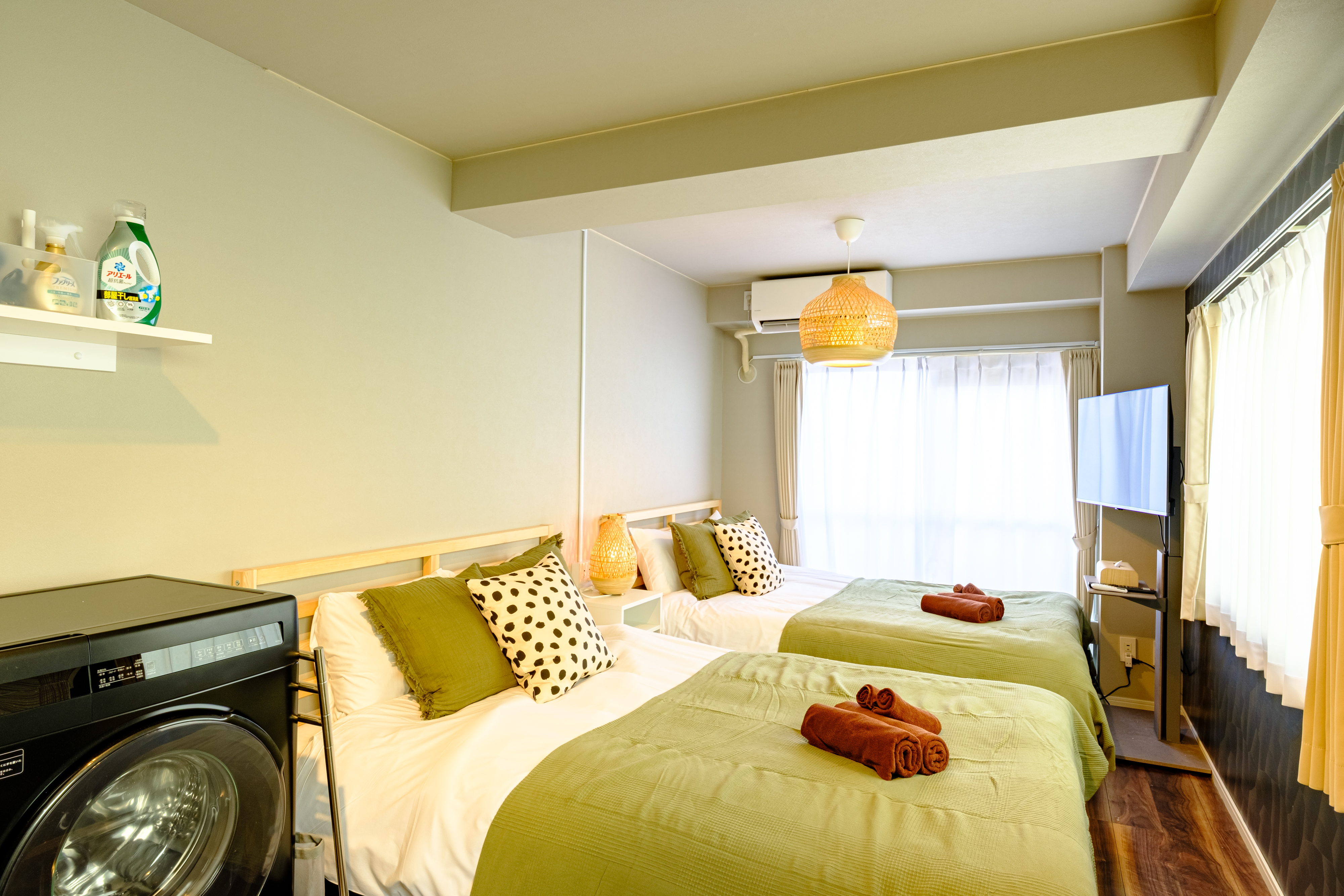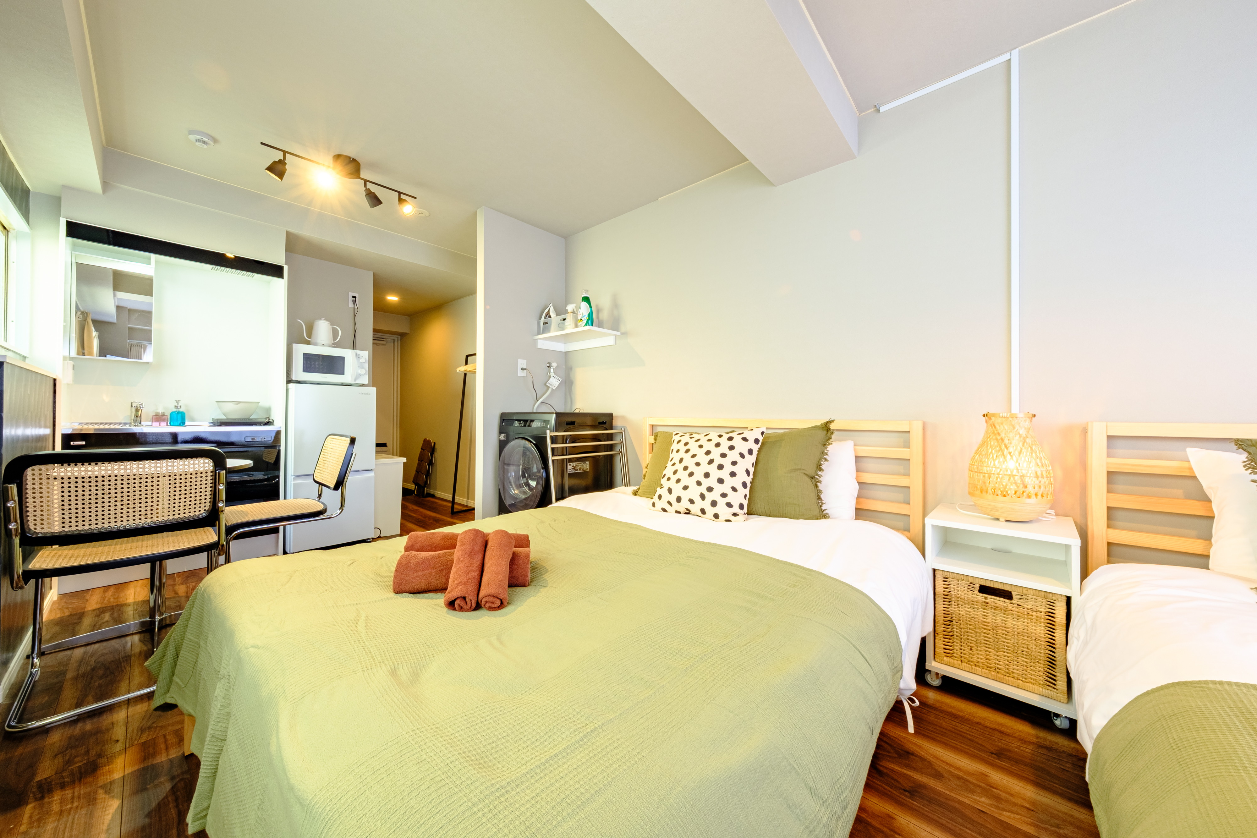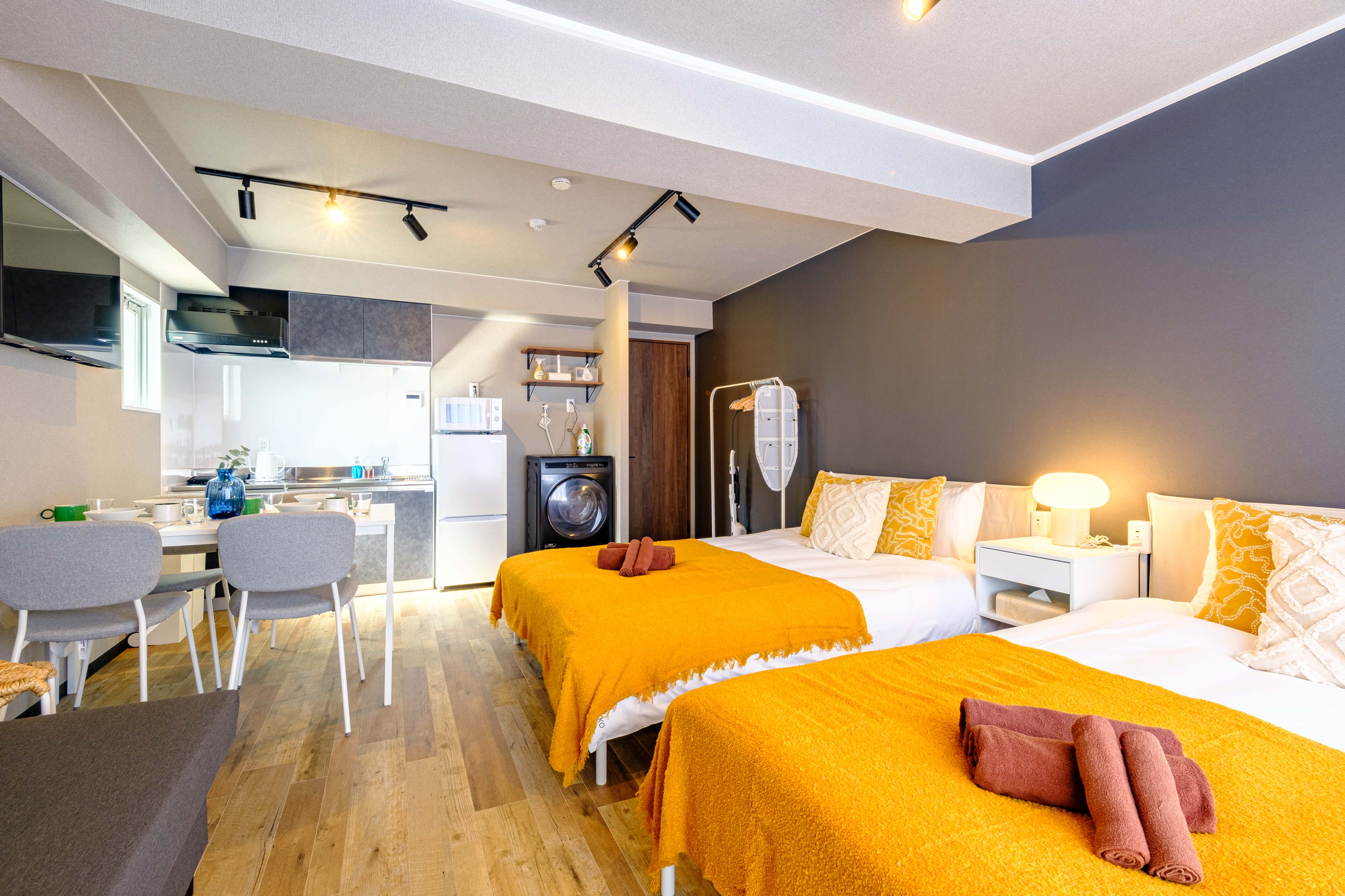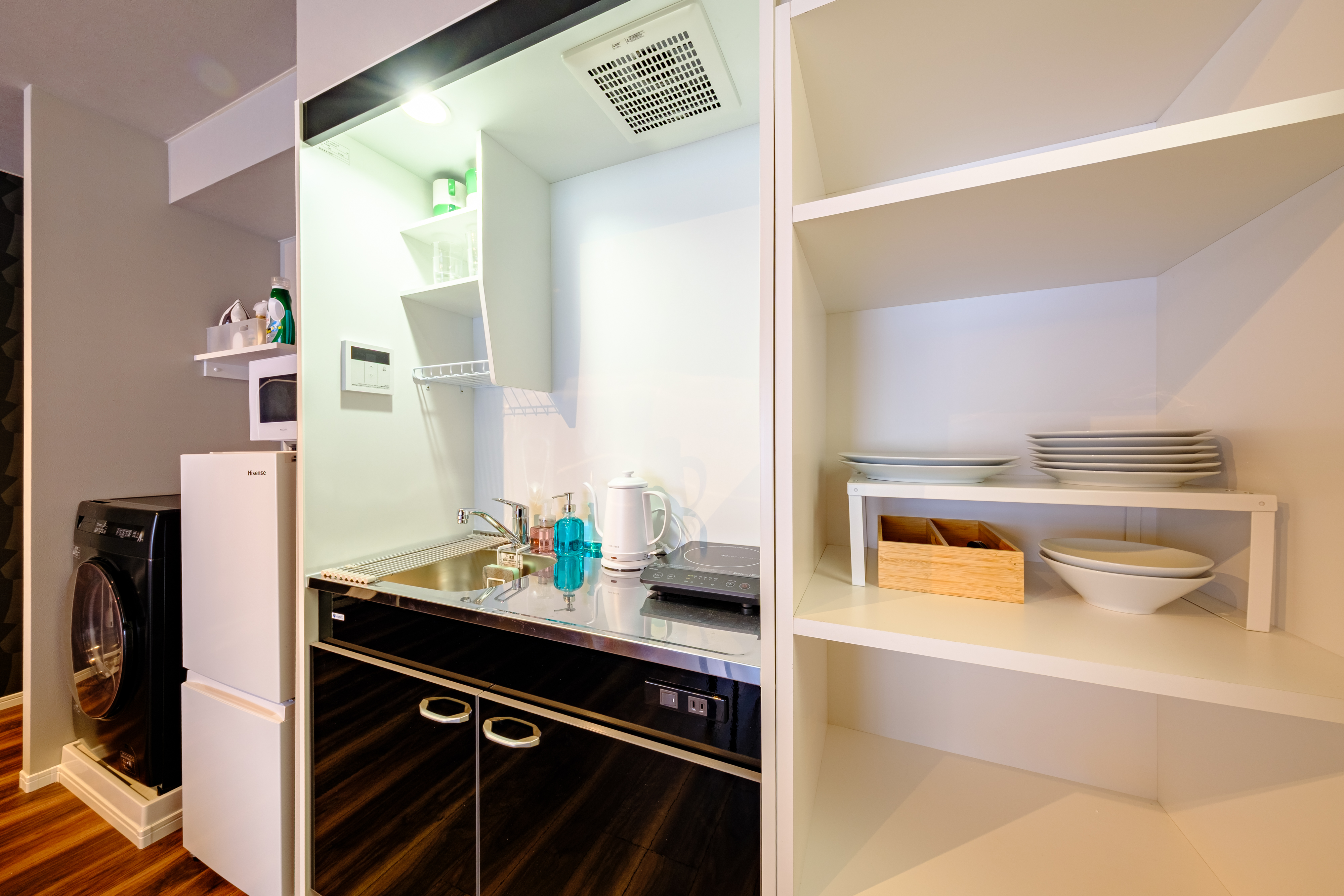 室内にはキッチン・洗濯乾燥機・Wi-Fi、消耗品類など生活に必要な設備を完備しており、長期滞在でも快適にお過ごしいただけます。