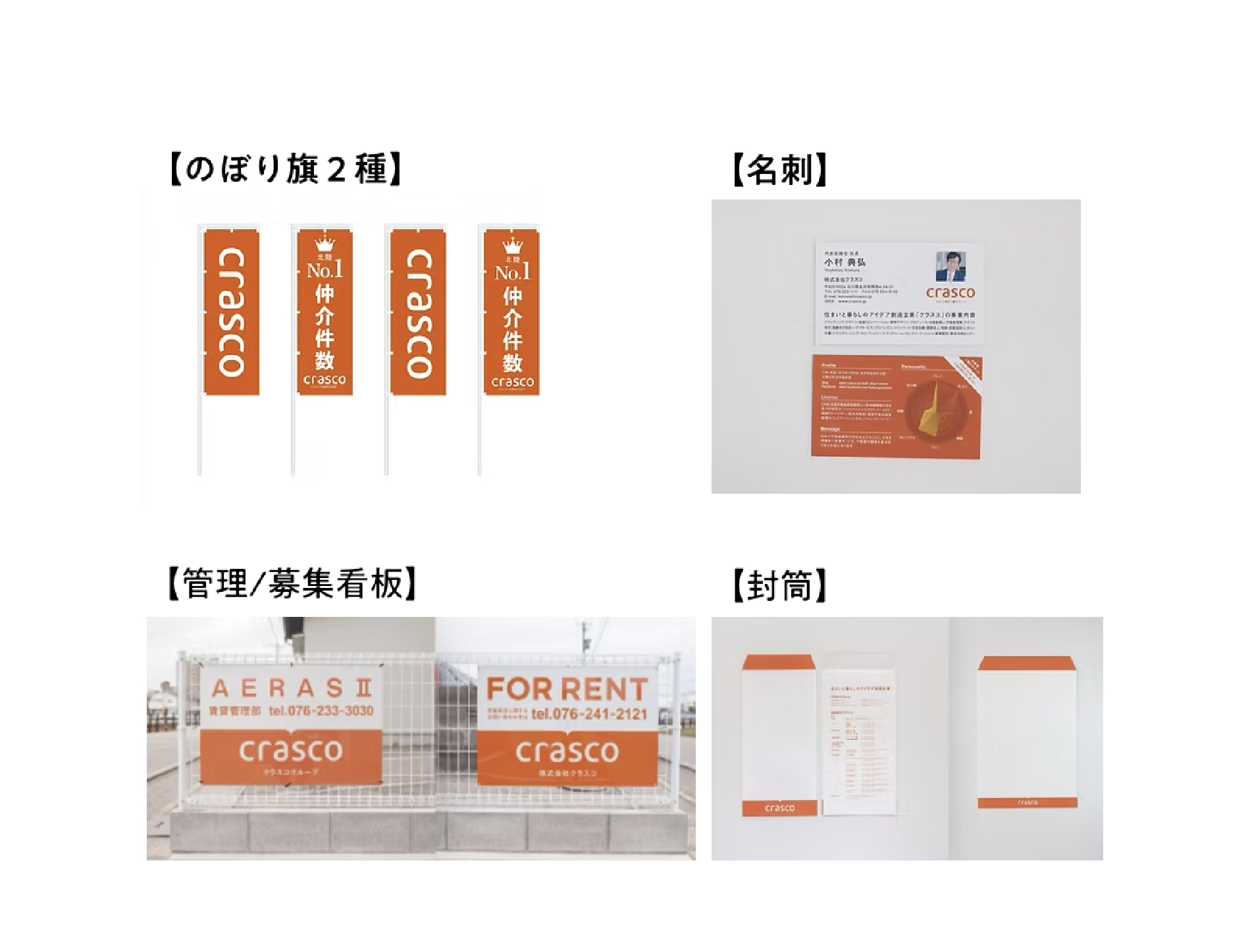 不動産業において最も重要な資産である「信頼」を、視覚的に構築するノウハウをツール化。ロゴ、名刺、封筒、店舗サインまで、顧客が触れるすべてのツールに一貫したデザインを適用することで、「この会社はしっかりしている」という安心感を醸成します。地域に根ざす企業としての誠実さとプロフェッショナリズムを、最も効果的に伝える色や形を知り尽くした私たちだからこそできる、ブランド構築です。