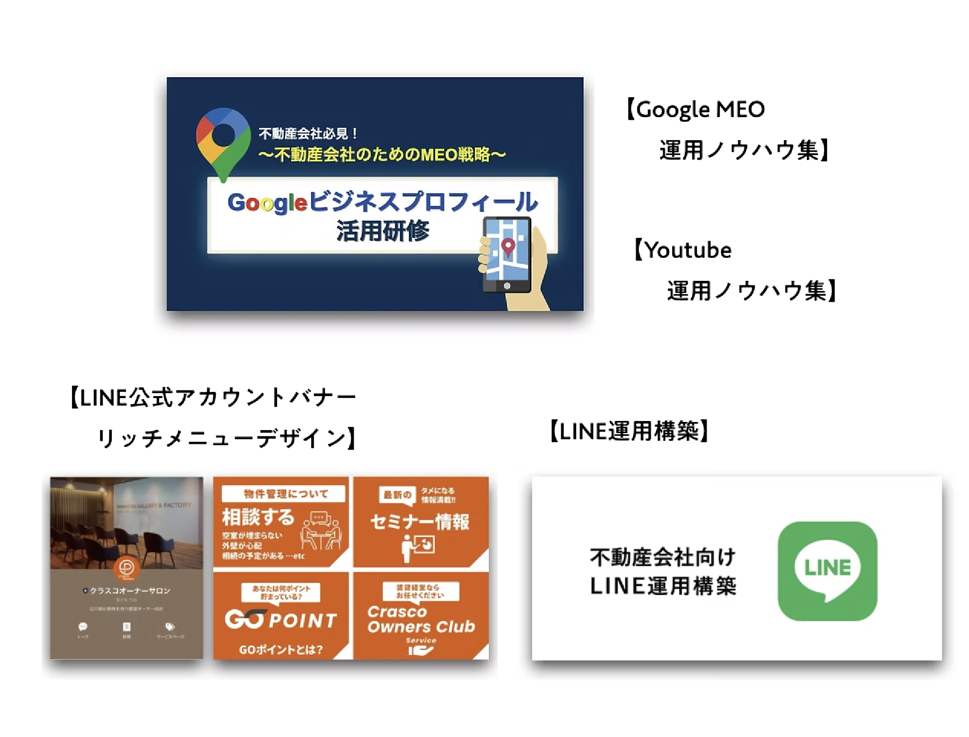 クラスコ自身が不動産会社として日々お客様と向き合う中で培った「成果に繋がるデザイン」のノウハウを凝縮。一般的なデザイン会社にはできない、集客や成約から逆算したツール制作で、不動産会社の事業成長を加速させます。