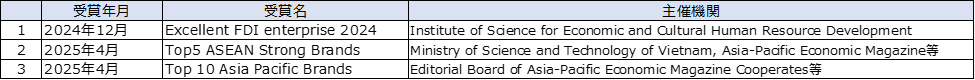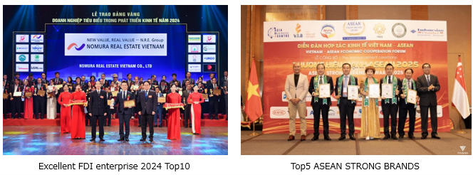 2019年に設立した現地法人「NOMURA REAL ESTATE VIETNAM CO., LTD(以下「野村不動産ベトナム」)」は、現地で推進してきた事業活動が継続的に評価され、優良なFDI※3企業を選出する、「Excellent FDI enterprise 2024 Top10」、ベトナム文科省が主催する、「Top5 ASEAN STRONG BRANDS」、ベトナム現地メディア機関が主催する、「Top 10 Asia Pacific Brands」等複数の賞を受賞し、ベトナム国内での認知力をさらに高めております。