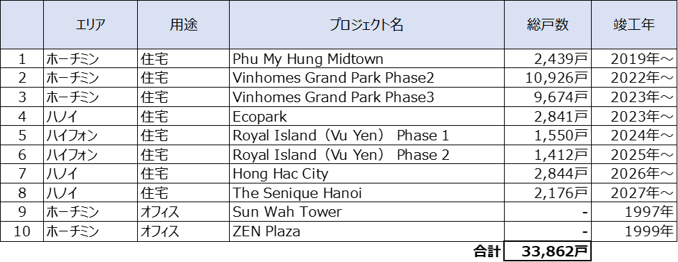 また野村不動産ベトナムはホーチミンエリア・ハノイエリアを中心に、これまで総戸数3万戸超となる分譲住宅8案件、オフィス2案件の合計10案件の事業に参画しており、進出済の海外事業国において最大規模となります。これまでに当社が国内で培ってきた知見を活かし、参画プロジェクトの付加価値向上に貢献することを目指しています。