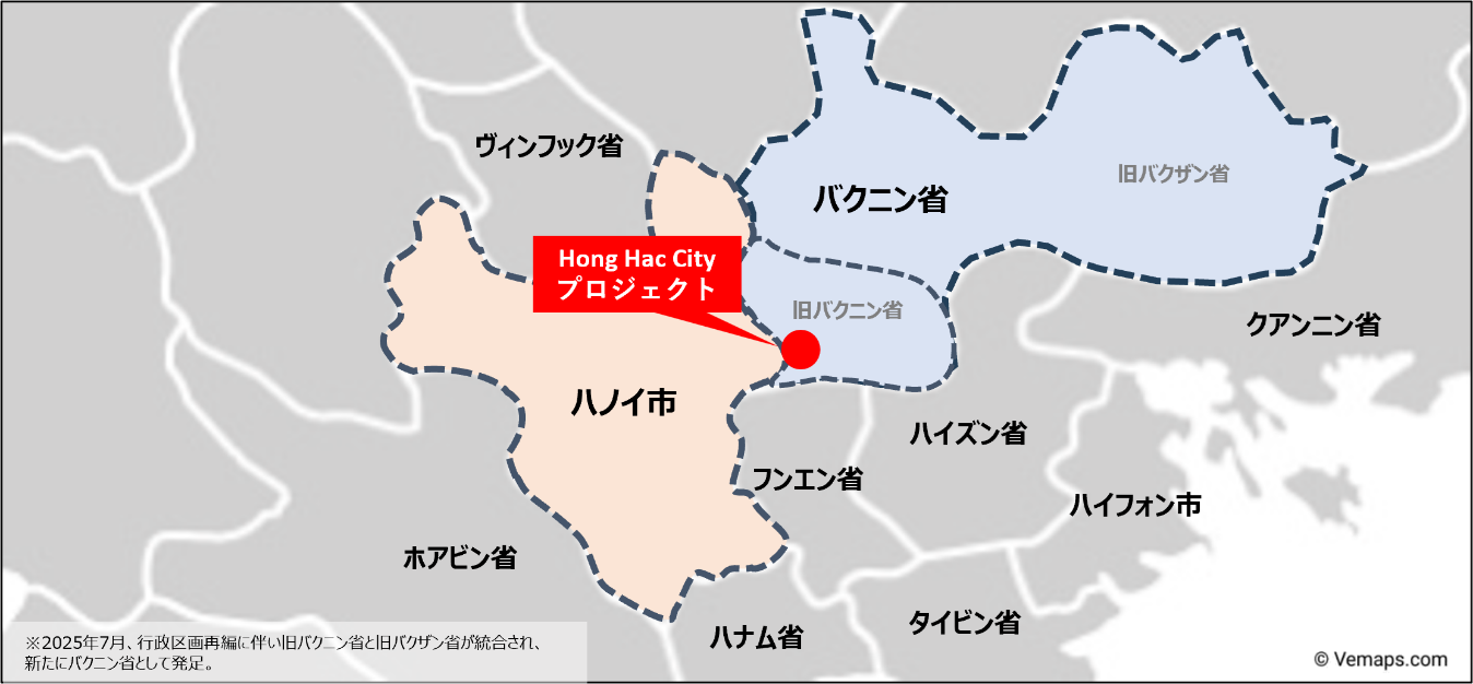 プロジェクトの計画地は、ハイテク産業が集積するバクニン省に位置し、ハノイ中心部から約20km、主要産業拠点とハノイを結ぶ国道17号線にも近接する、ハノイ東部の玄関口です。