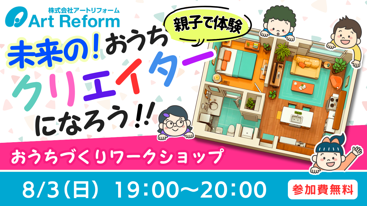 全国でリフォーム事業を展開する株式会社アートリフォーム(本社:大阪府吹田市、代表取締役社長:大本哲也、以下「アートリフォーム」)は、2025年8月3日(日)に、親子向けオンライン教育サービス「キッズウィークエンド」にて、住宅業界&リフォーム業界で初となる子ども向け授業「親子で体験!未来のおうちクリエイターになろう!」を開催します。当社は「リフォーム業界をもっと魅力的に変えていく」というミッションのもと、リフォーム業界やリフォームの仕事の魅力を届けることを目的に、次世代に“リフォームの面白さ”を伝えます。