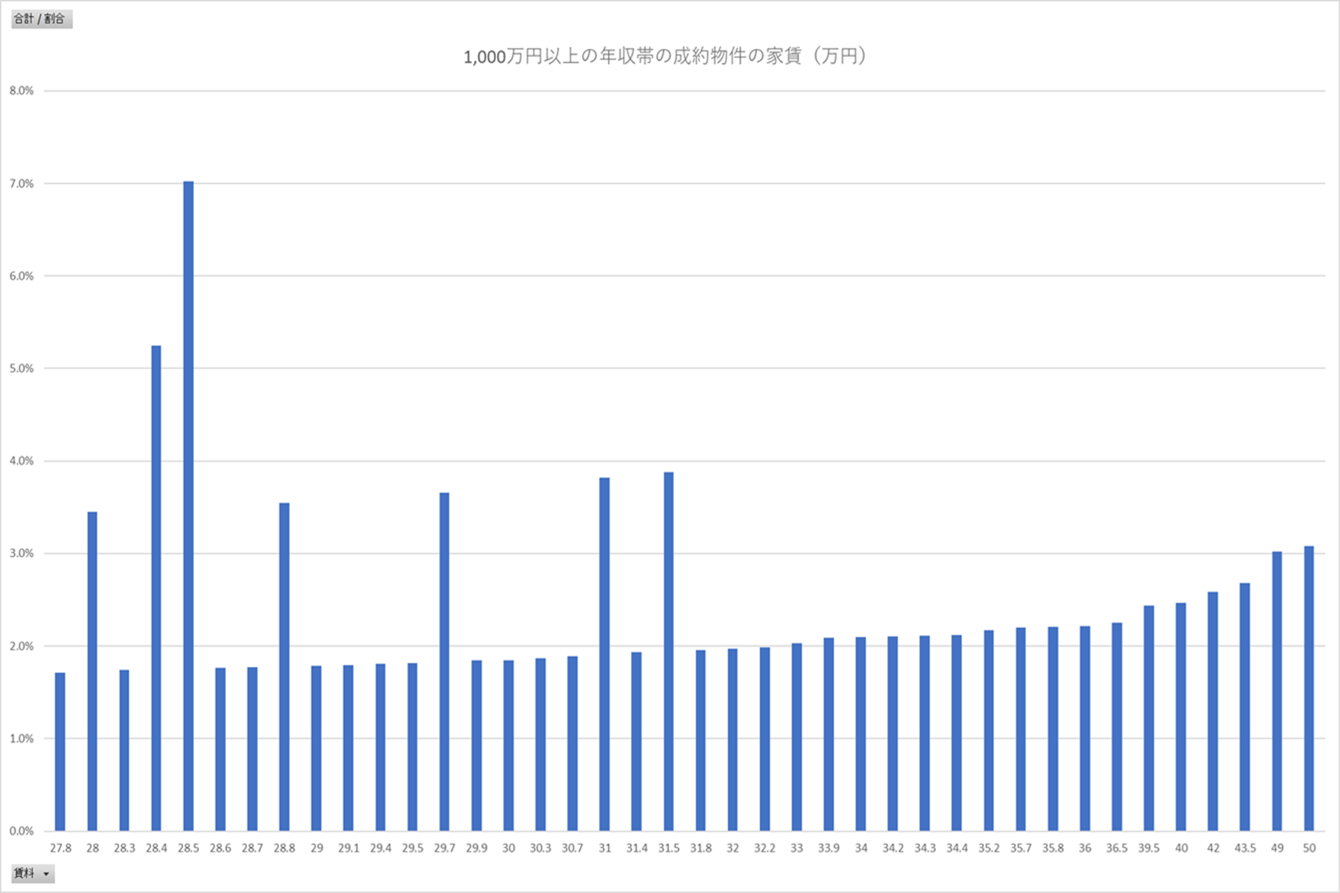 そして年収1,000万円以上の層は、データ上も明確に港区・中央区・文京区・渋谷区といった都心の高級住宅地に集中してきます。広めの1LDKや2LDKだけでなく、70m2を超える3LDKといったファミリータイプも成約しており、月額賃料が30万円を超える物件も少なくありません。