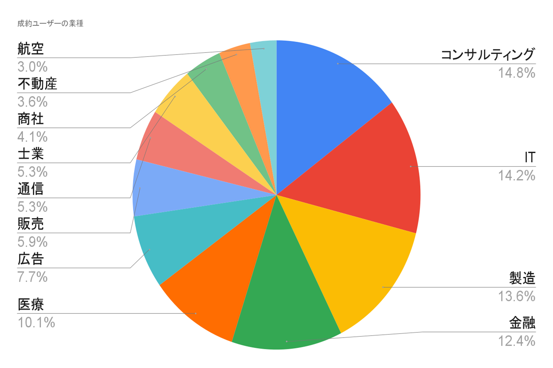 実際の成約データをもとに、賃貸契約者の業種を以下のようにまとめました。都心の高級賃貸物件を探している賃貸契約者はコンサルティング・IT・製造(メーカー)・金融・医療・広告の業種が多いことが分かります。都心にオフィスを構えている大手企業勤務の職住近接志向の賃貸契約者のニーズが反映されています。