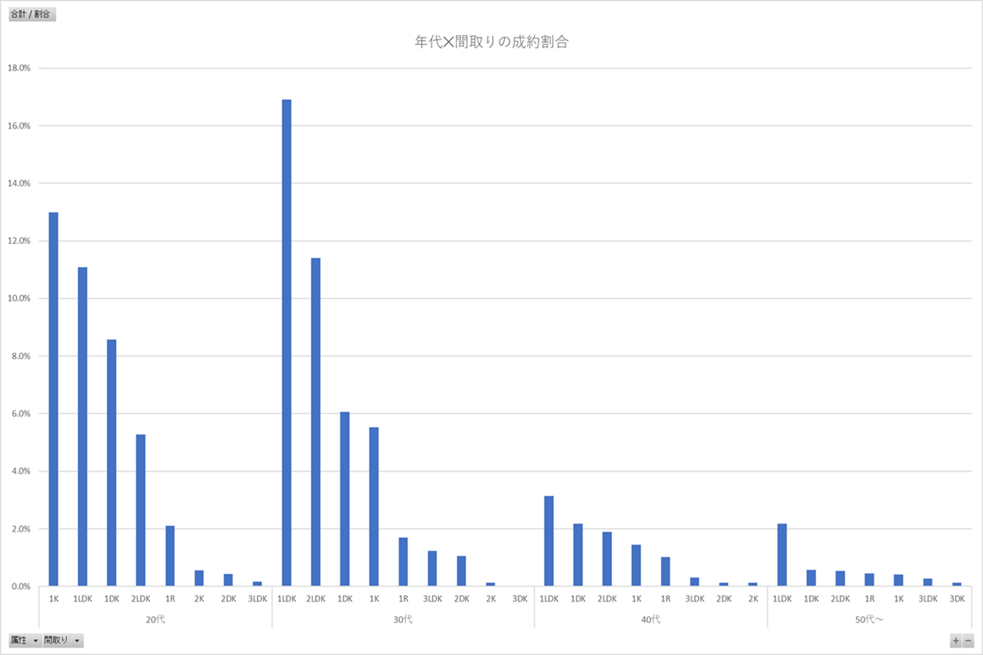 成約データからは、間取り・賃料・エリアの選び方が「年収」「性別」「年代」「職業」と密接に関連していることが分かります。例えば