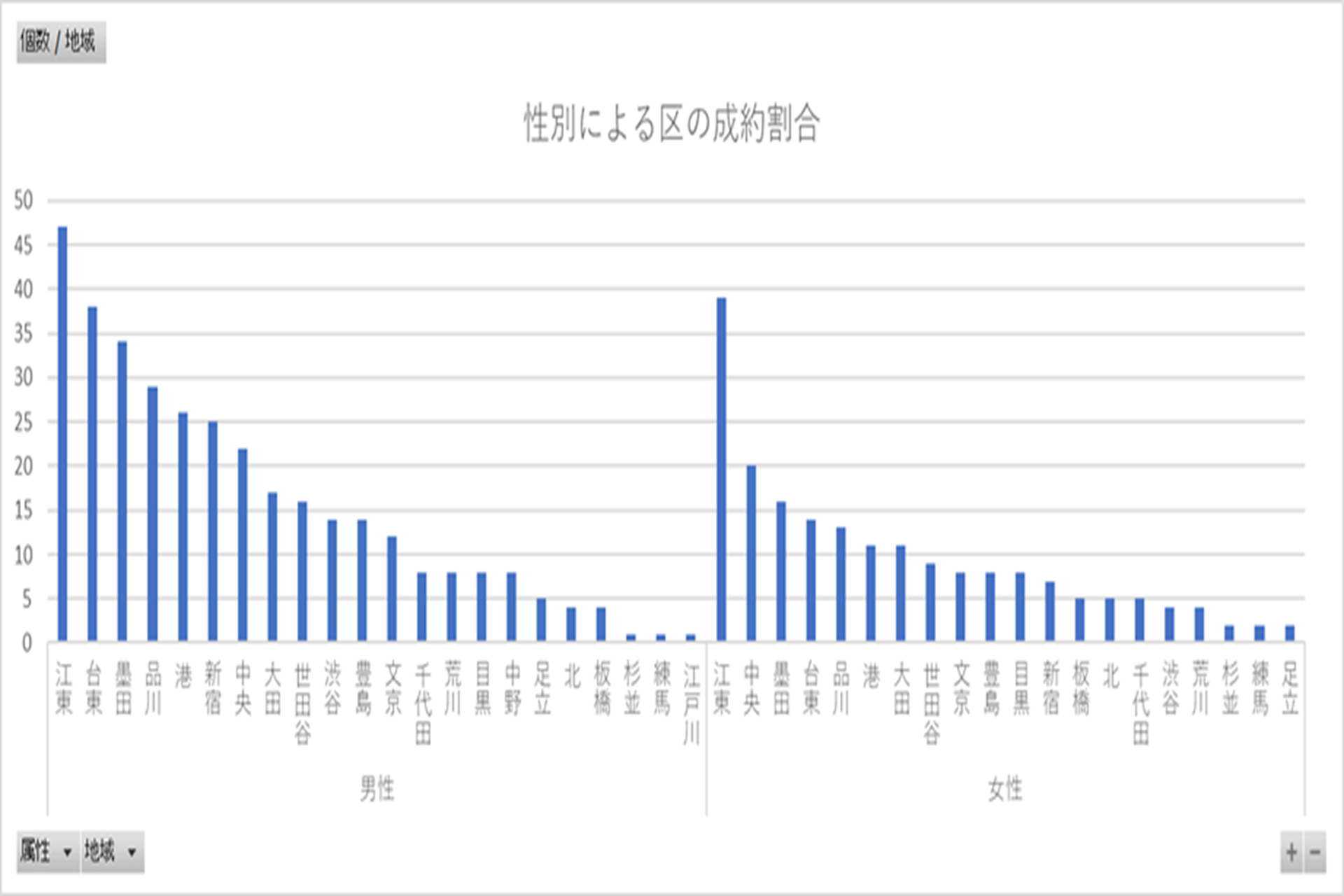 男性・女性それぞれどのエリアの物件を選んでいるか