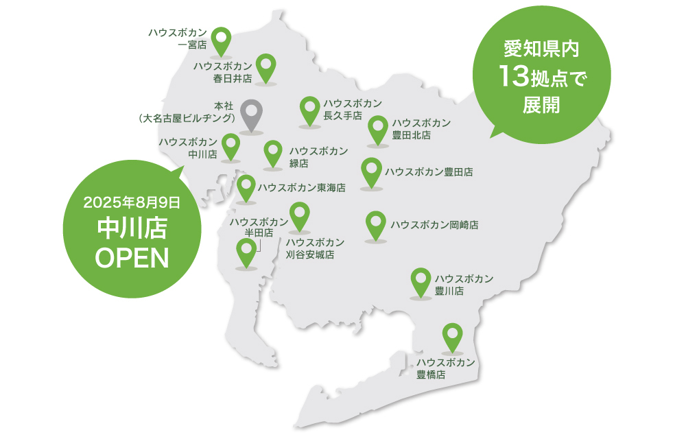 【愛知の不動産売るのも買うのも、ハウスボカン】2025年8月9日(土)、愛知県名古屋市中川区に13店舗目となる新店舗をオープン!