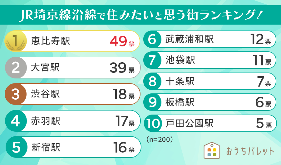 女性が選ぶ「JR埼京線沿線に住むとしたら、もっとも住みたいと思う駅」ランキング!