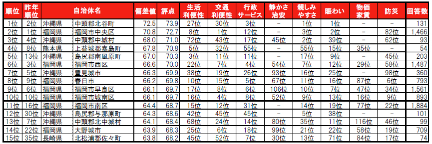 街の住みここちランキング2025<九州・沖縄版>自治体TOP15・因子別順位