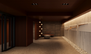 かつて“大人の隠れ家”として好まれた地で、都心の賑わいから離れ、隠れ家の中で安らぎを感じられる空間を創出します。屋外からのルーバーや天井のデザインを引き込み屋内外の連続性を演出、