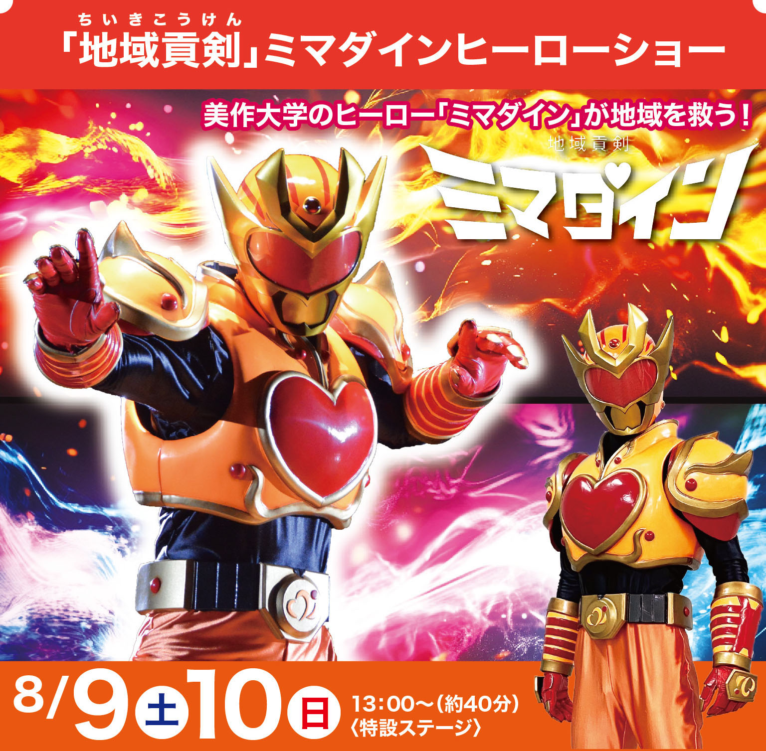 迫力満点のヒーローショー「ミマダインショー」をはじめ、思わず笑顔になる大道芸人のパフォーマンスショー、お菓子まき、豪華景品が当たる大抽選会など家族みんなで楽しめるイベントを多数ご用意しています!