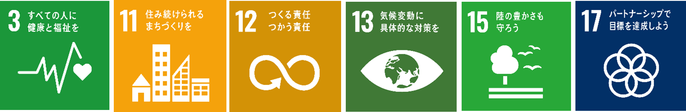 当社は、本システムの開発を通じてSDGs目標3「すべての人に健康と福祉を」、SDGs目標11「住み続けられるまちづくりを」、SDGs目標12「つくる責任 つかう責任」、SDGs目標13「気候変動に具体的な対策を」、SDGs目標15「陸の豊かさも守ろう」、SDGs目標17「パートナーシップで目標を達成しよう」の実現に努めてまいります。