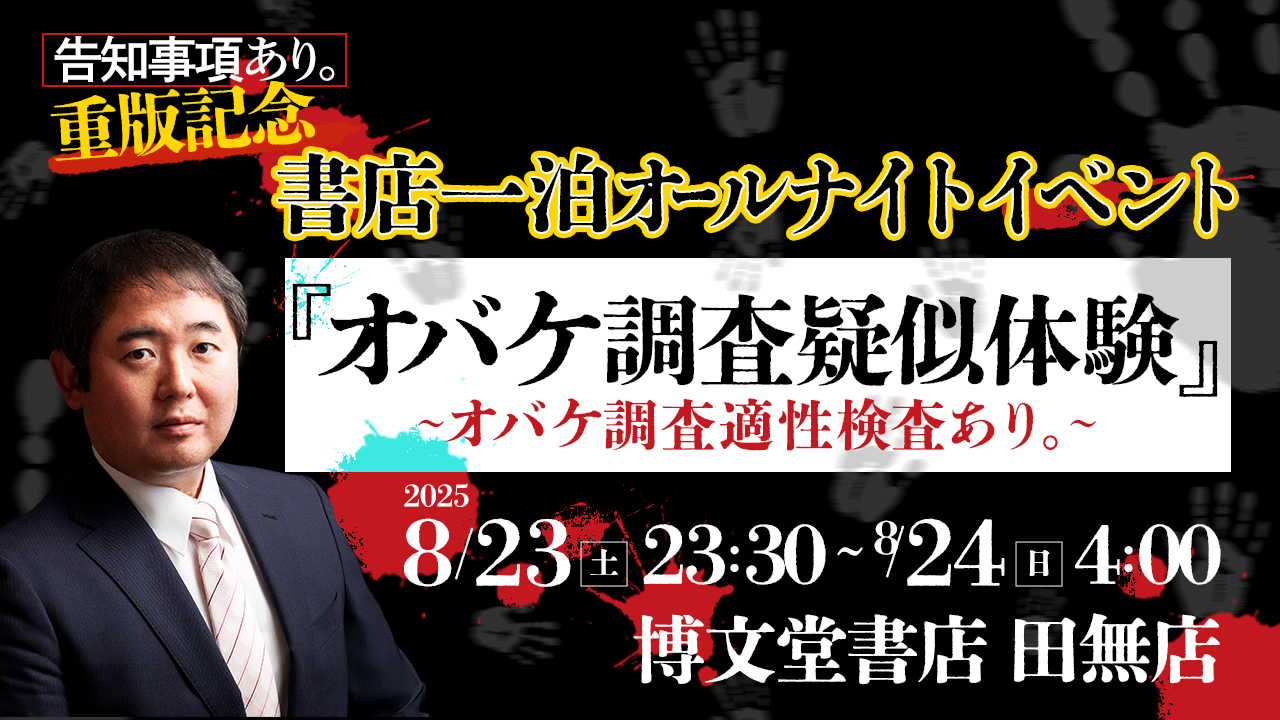 書店に一泊?事故物件専門のオバケ調査会社社長が、オバケ調査の疑似体験をできるオールナイトイベントを8月23日(土)の深夜に開催!