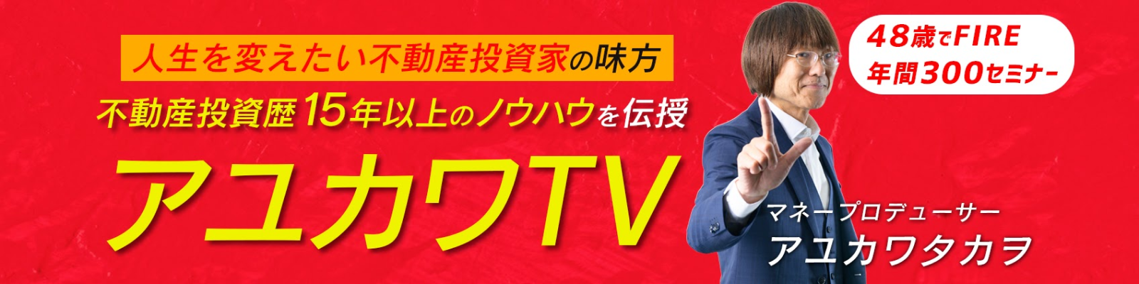 総合マネープロデューサー・アユカワタカヲ氏が運営する、登録者数2万人超の不動産投資専門YouTubeチャンネル。投資戦略や融資交渉術、物件管理など、実務に即した情報を配信しています。