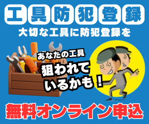※工具防犯登録認定店で工具を購入し、登録申込(有料)される事で、防犯登録済シールの提供、工具盗難補償サービス(1年間補償料:税込売価7%/税別)のオプション利用ができます。