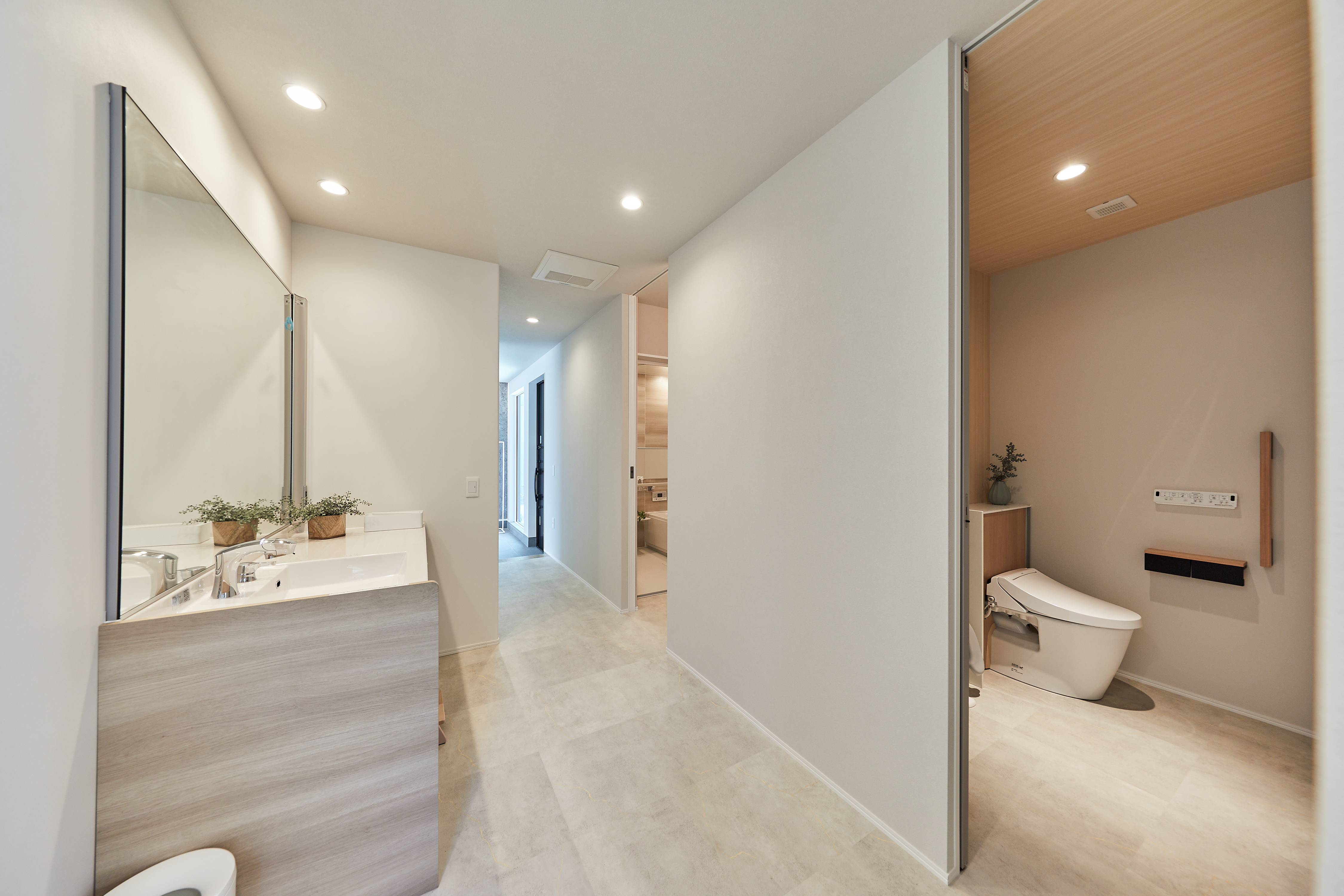 ①どろんこ動線:リビングを通らずお風呂に直行