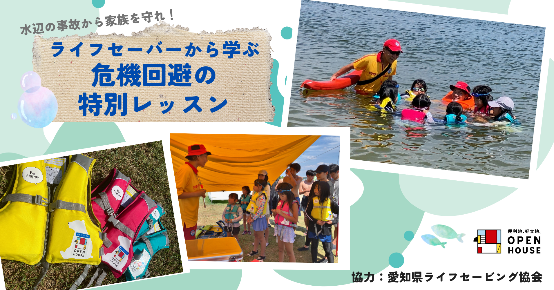株式会社オープンハウスグループ(本社 東京都千代田区、代表取締役社長 荒井正昭、以下「当社」)のグループ会社である株式会社オープンハウス 名古屋支社は、愛知県ライフセービング協会(愛知県常滑市)と共同で、新舞子ブルーサンビーチにて夏休み中の水辺の事故から家族を守るための知識と実演講習会を実施しました。また、オープンハウスグループは「より多くの子どもたちにライフジャケットを正しく着用して楽しんでほしい」という願いから、キッズ用ライフジャケットを新舞子マリンパーク事務局に寄贈しました。