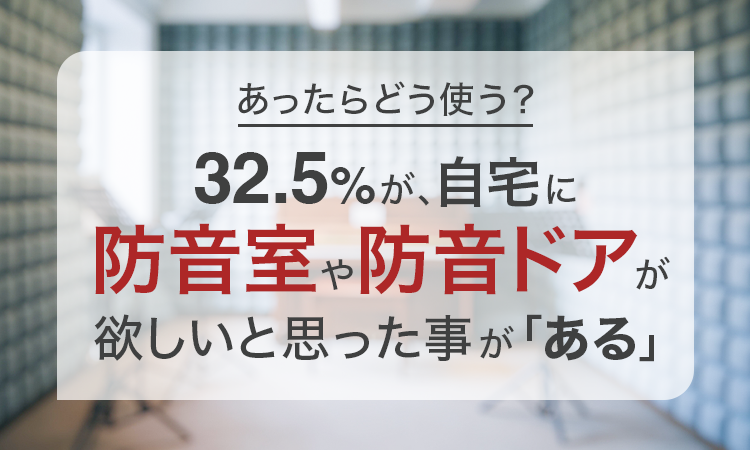 32.5%の方が、自宅に防音室や防音ドアが欲しいと思ったことがあり、「音楽や楽器を楽しみたい」「生活音を気にせず過ごしたい」「ペットの声で近隣に迷惑を掛けたくない」などが多く見られました。