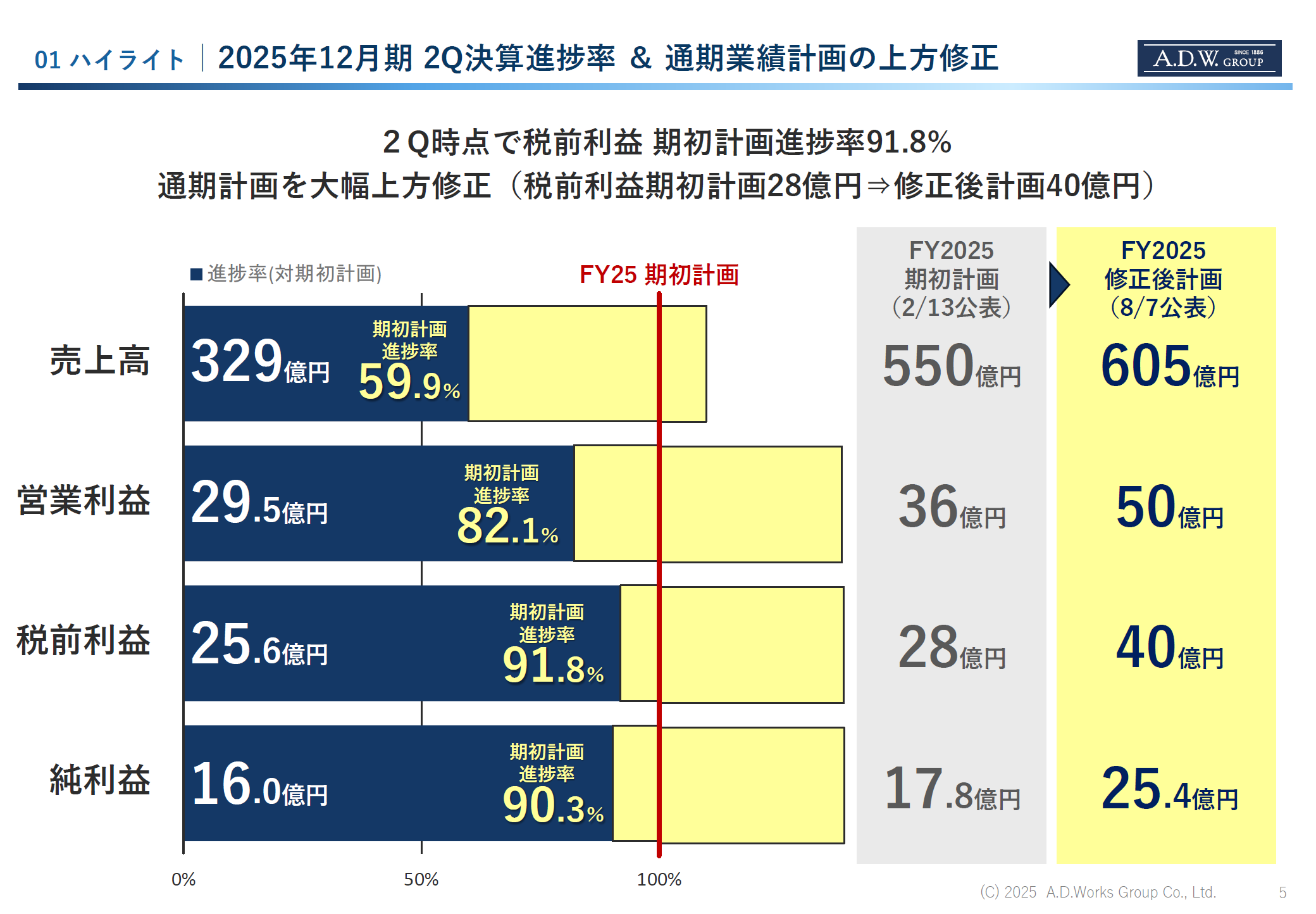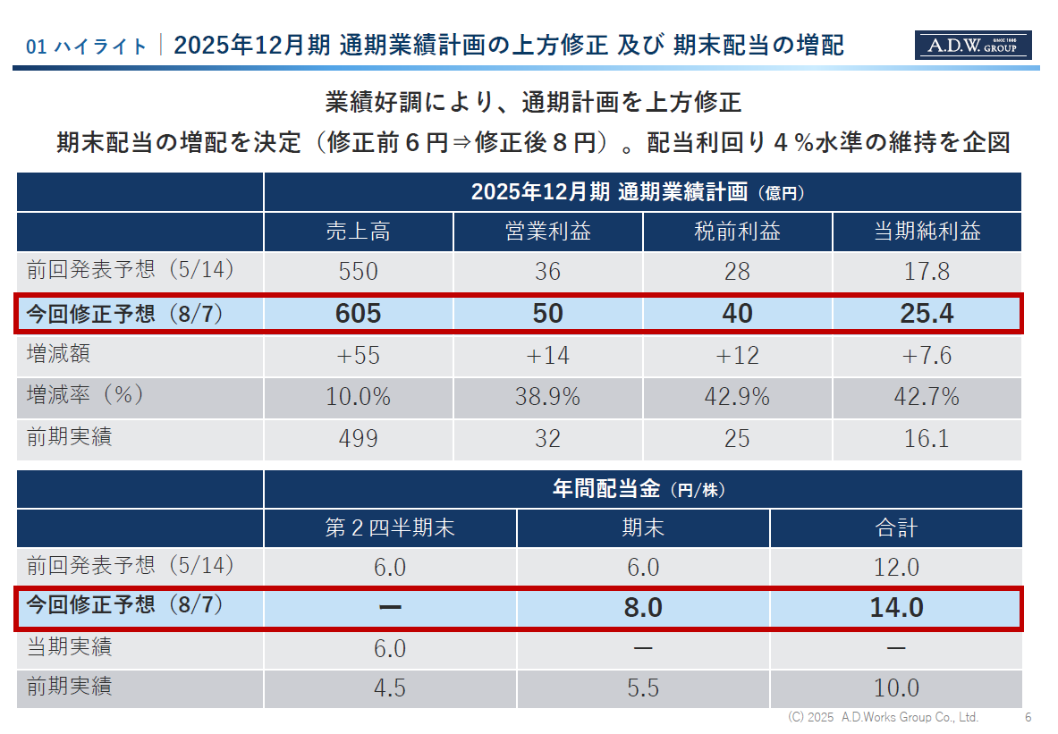 ADワークスグループ、2025年12月期 第2四半期決算を発表 税前利益期初計画91%超えで 通期業績計画を大幅上方修正