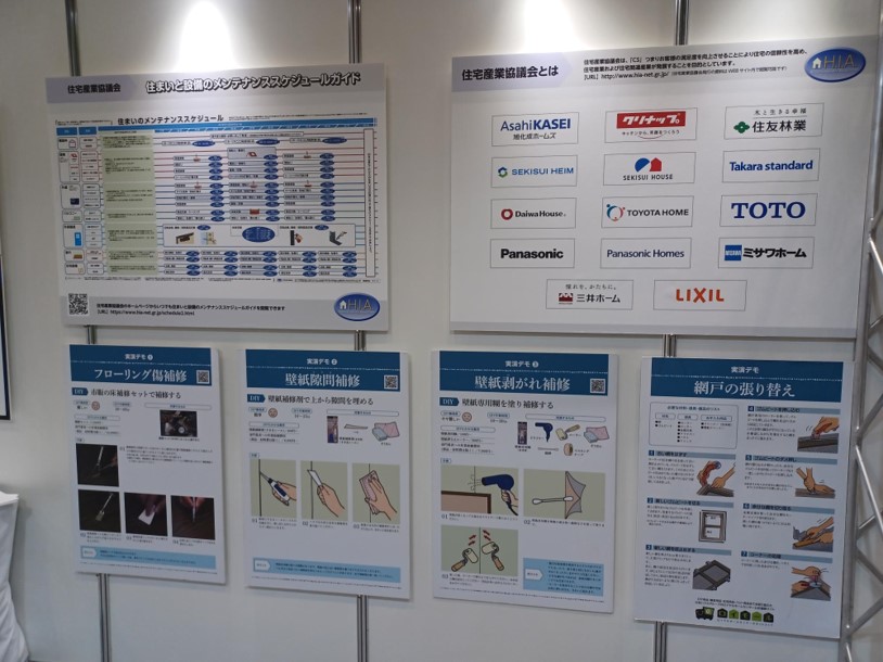 住宅産業協議会では、住宅に「より長く」「より快適に」お住まいいただくには、お客様ご自身による「日頃のお手入れ・点検・簡単補修」と「計画的な維持管理(メンテナンス)」が重要であると考え、お客様に対する啓発活動の一環として作成してきた各種お役立ちツールをパネルや映像でご紹介します。