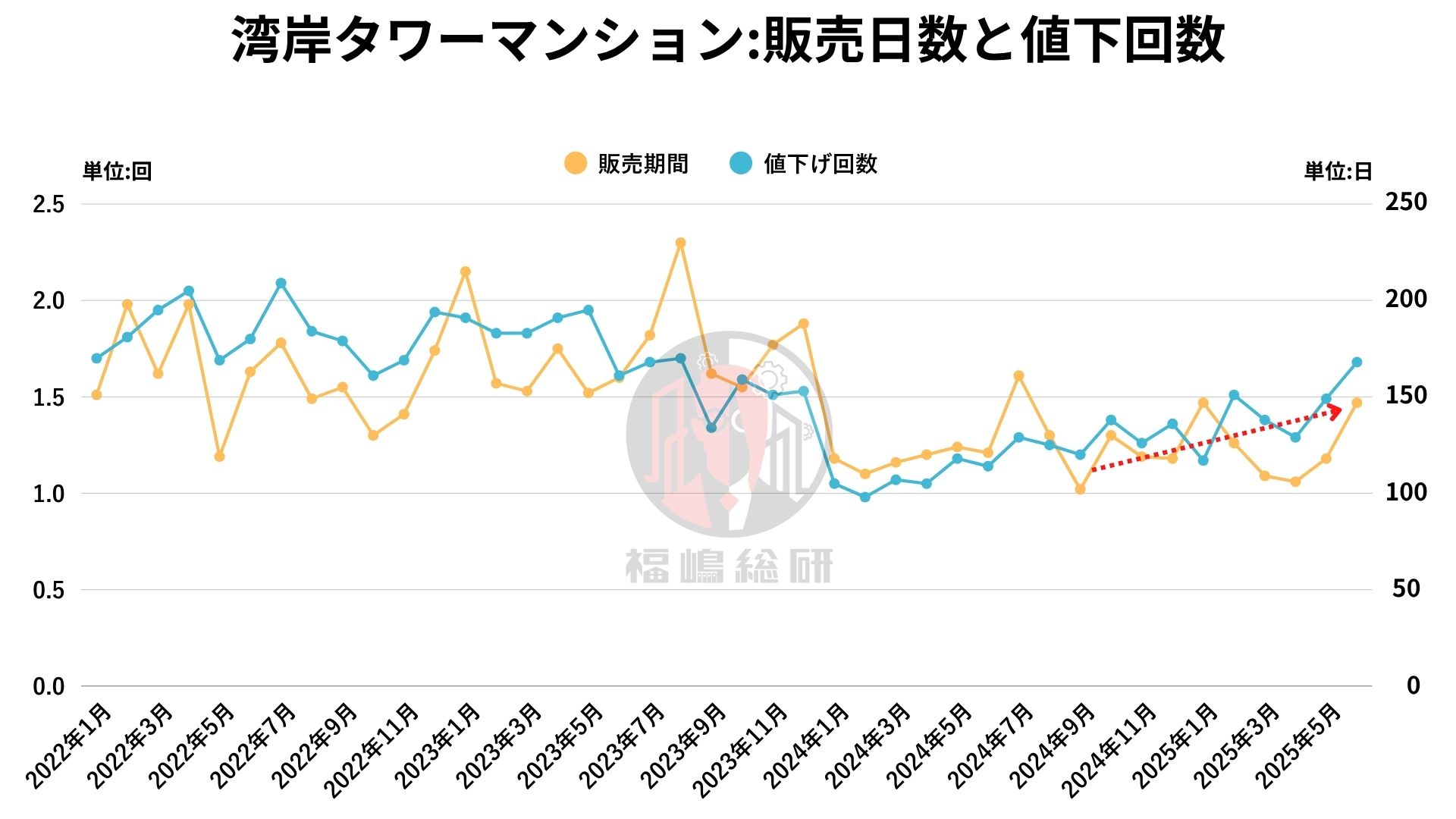 タワーマンション市場の温度感を測るうえで重要なのが、販売日数値下げ回数です。