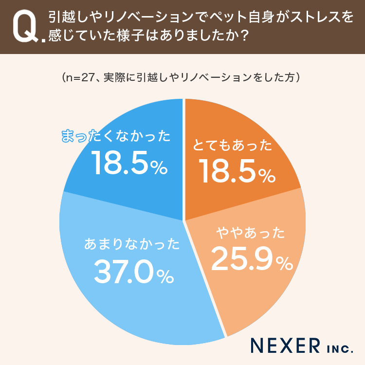 次に、引越しやリノベーションでペット自身がストレスを感じていた様子は遭ったか聞いてみました。