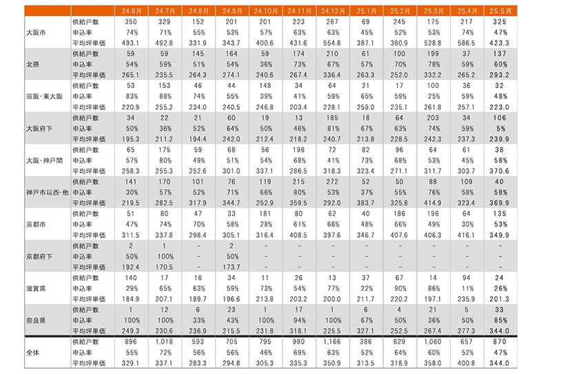 集計対象エリアは首都圏及び関西で、それぞれのエリア別相場情報、需給動向、着工件数等を集計しました。