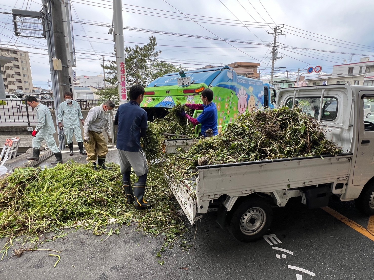 近年は町内会の高齢化に伴い、担い手不足が課題となる中、企業として地域の“担い手”となるべく、スタッフ全員が一丸となって取り組んでいます。年1回の清掃では、毎回約45リットルのごみ袋を100袋近く回収。大量の草を前にしても「まずは小さな一歩から」という想いで、毎年欠かすことなく続けてきました。