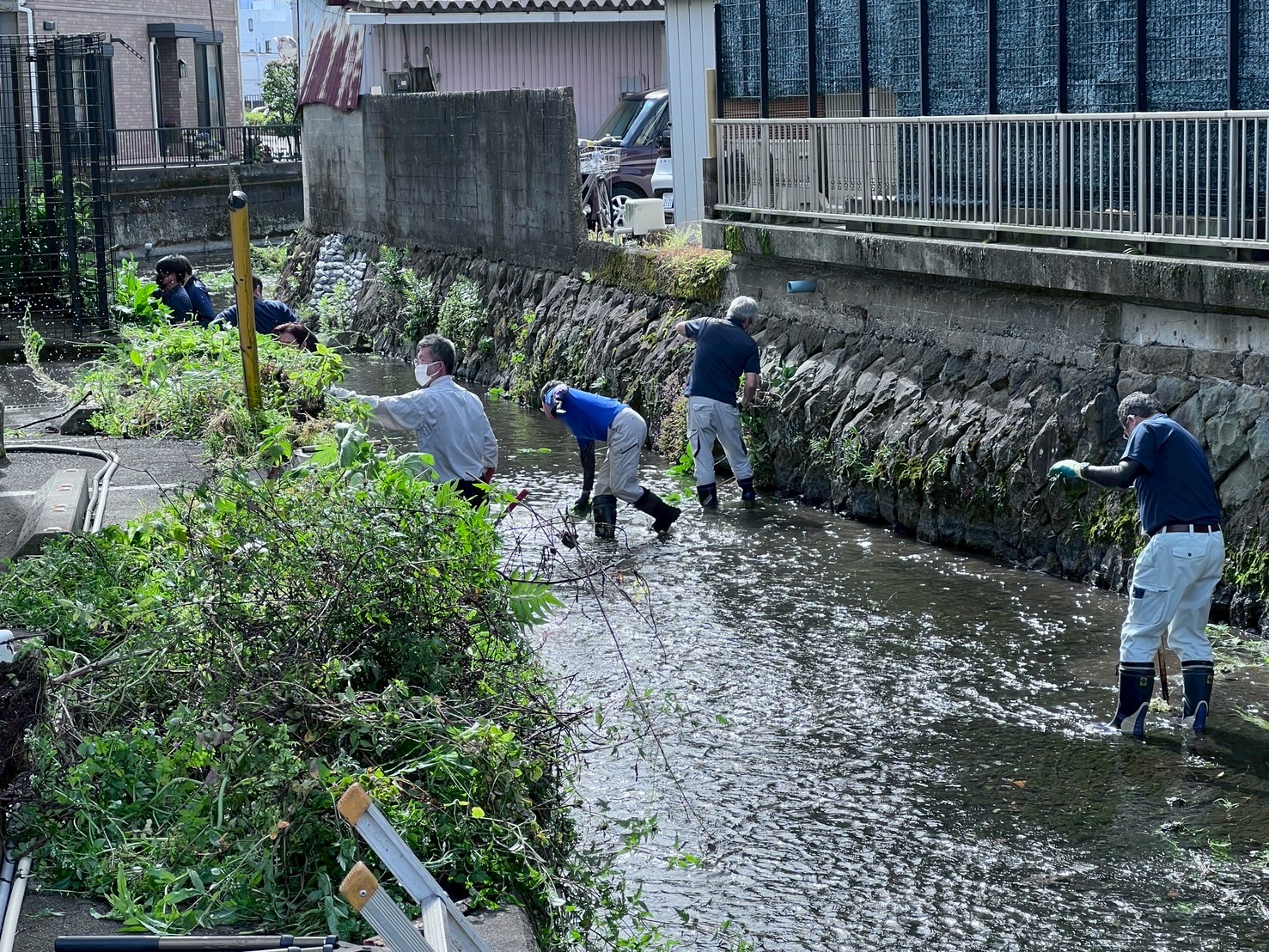 三島市中央部を流れる源兵衛川は、富士山の湧水を水源とする美しい清流で、初夏になると無数のホタルが舞う幻想的な光景が広がります。この自然環境を未来へ残すため、株式会社アーネストは20年近く前から、社員総出で定期的な清掃活動を継続しています。